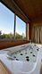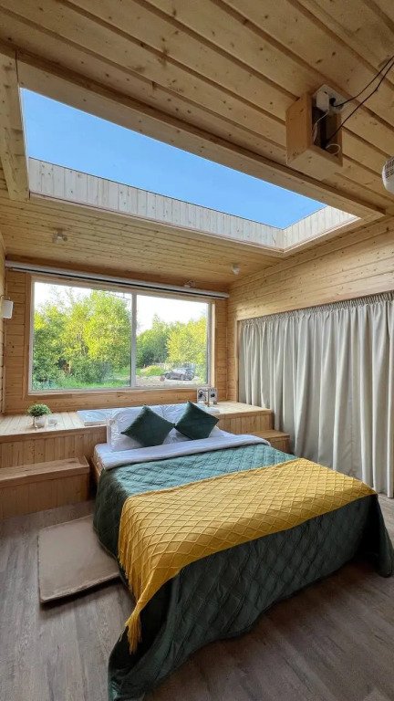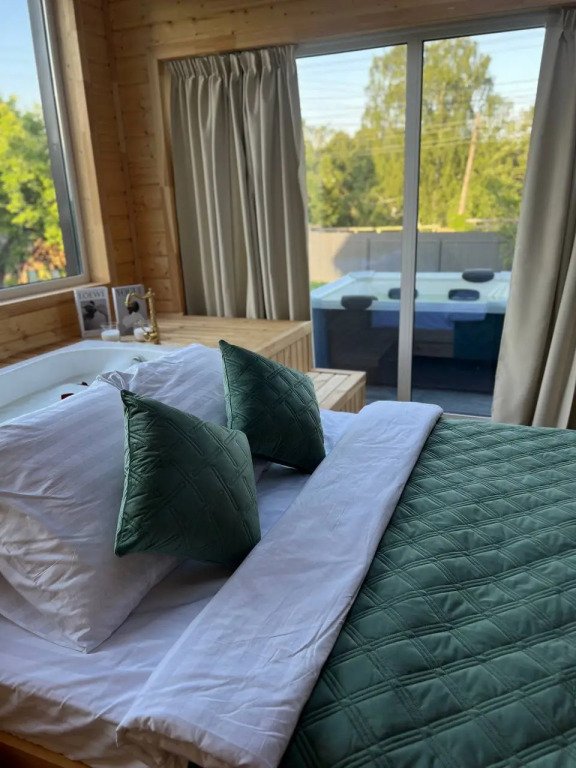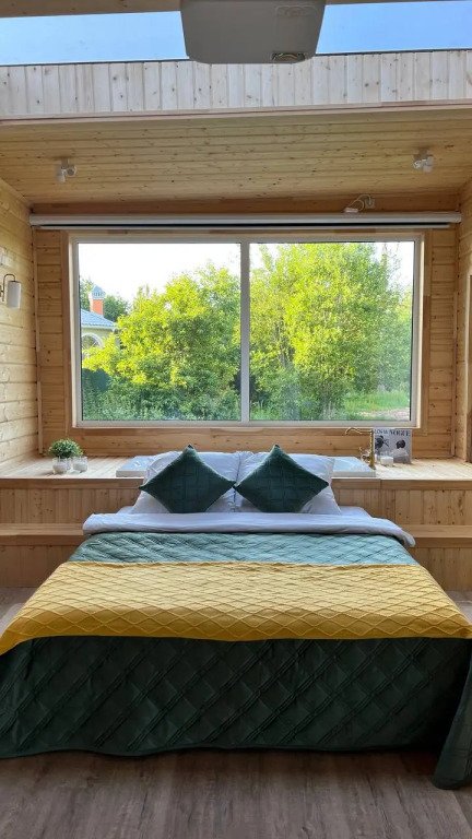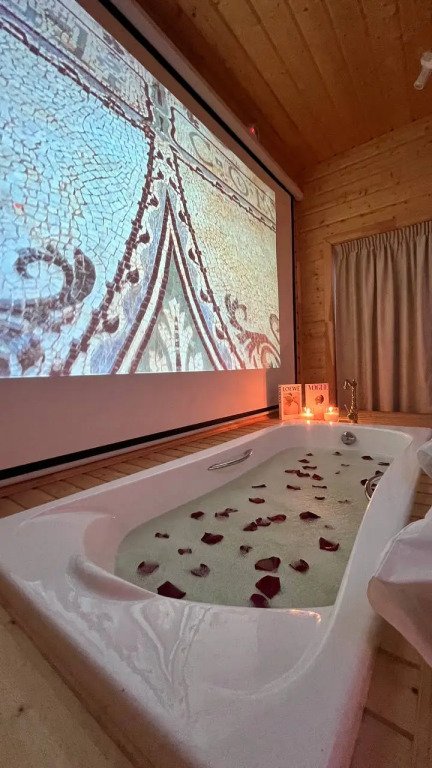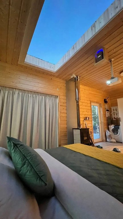 К услугам гостей дом с уличным джакузи с видом на лес, круглогодичной ванной с видом на природу, кроватью у панорамного окна, территорией без соседей, мангальной зоной и проектором.