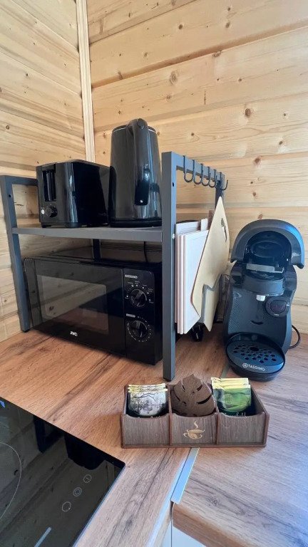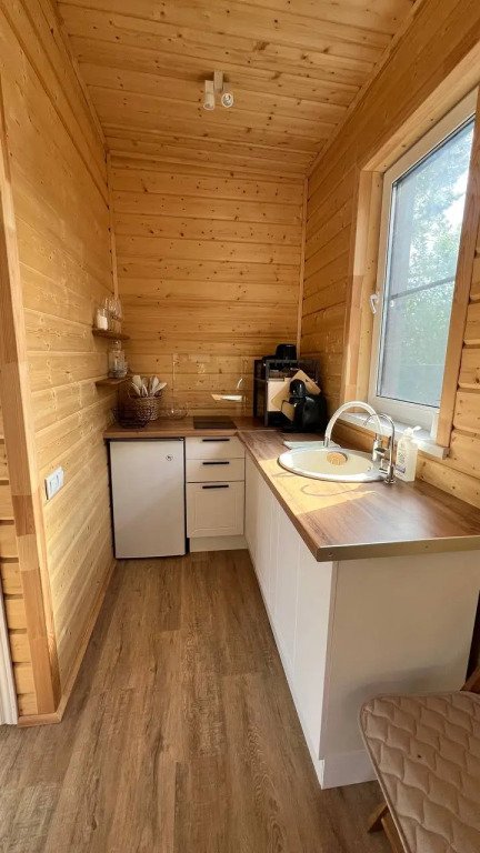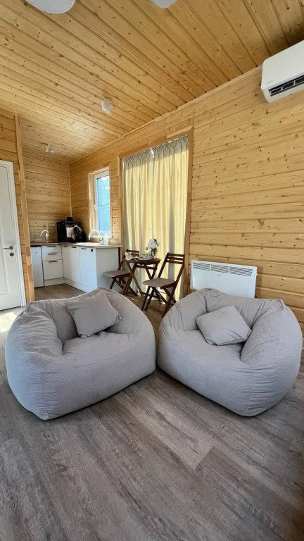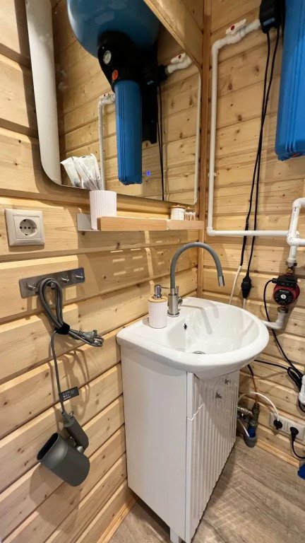 Дом оснащён необходимым для проживания: холодильник, варочная панель, микроволновая печь, посуда, кухонные принадлежности, бокалы, проектор, умная колонка с Алисой, Wi-Fi, полотенца, халаты, тапочки, фен, гель для душа, шампунь, бальзам, зубные наборы, чай, кофе, соль, сахар, перец, оливковое масло.
