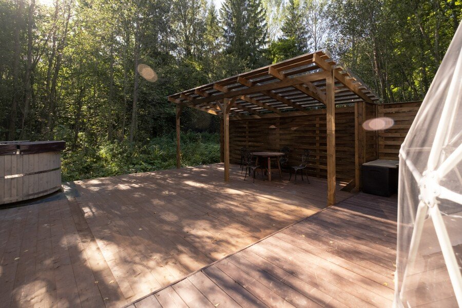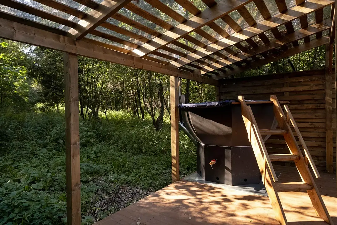 Каждый домик и сфера оборудованы собственной зоной отдыха с чаном или фурако, а также мангалом.