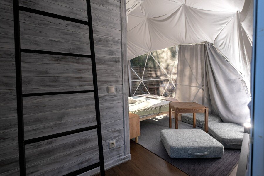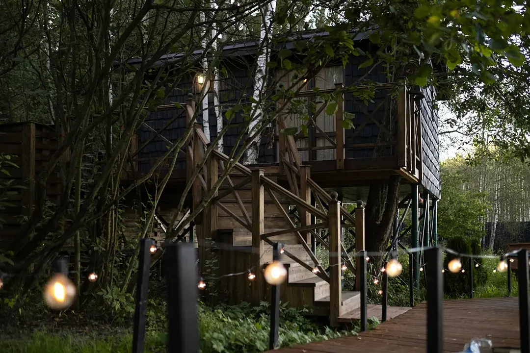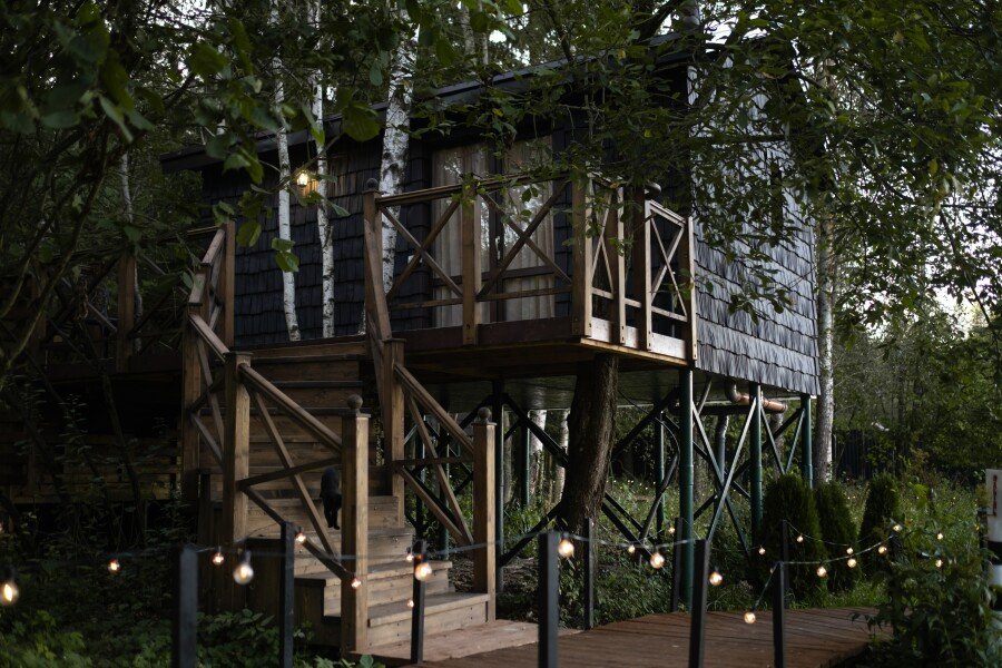 Глэмпинг «В кронах» — это роскошный отдых на природе в Подмосковье, гарантирующий уединение и спокойствие.