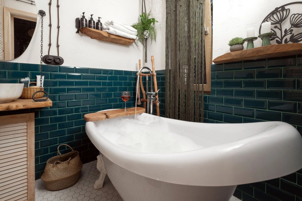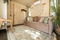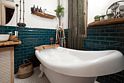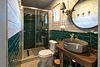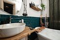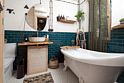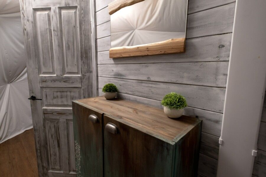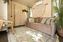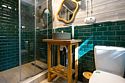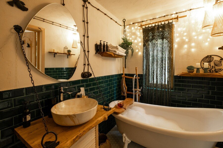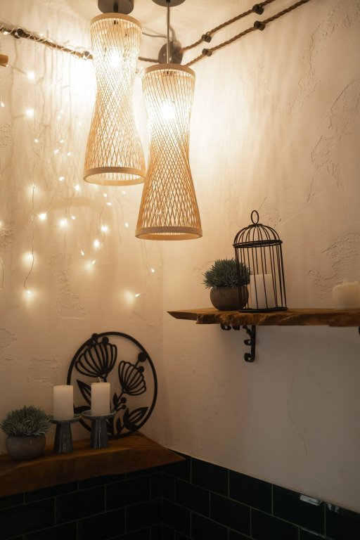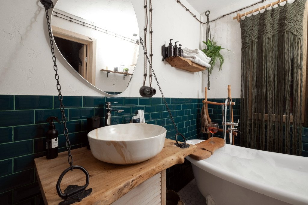 Винтажная мебель, оригинальные светильники и изысканное зеркало наполняют пространство характером.