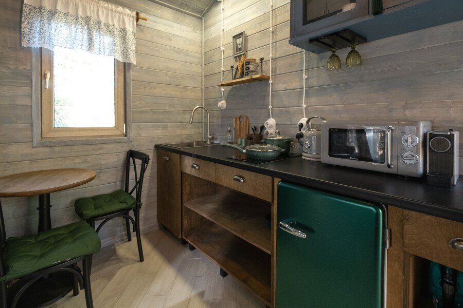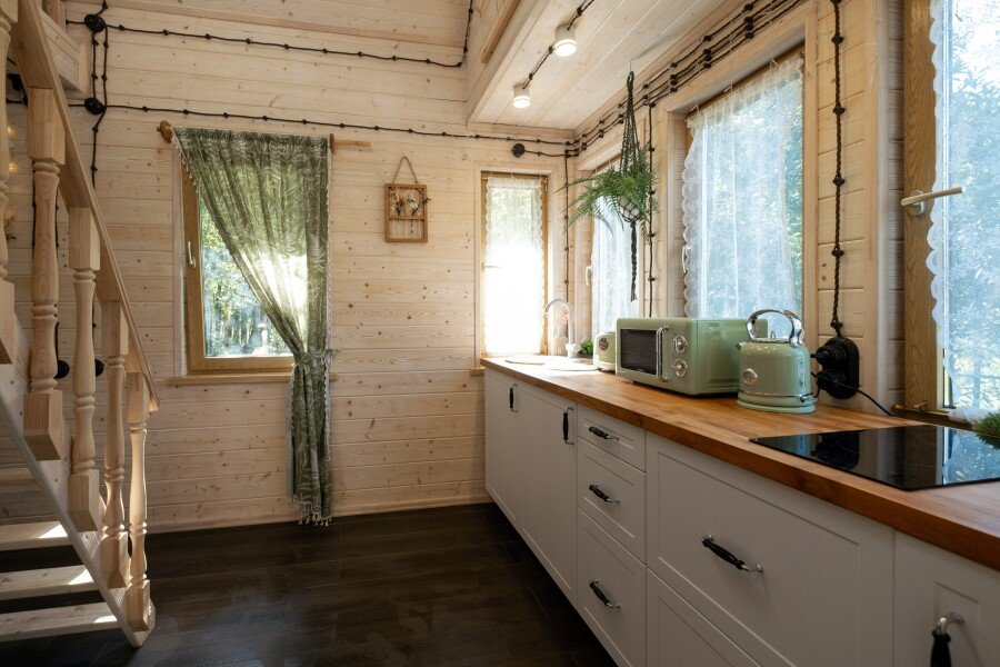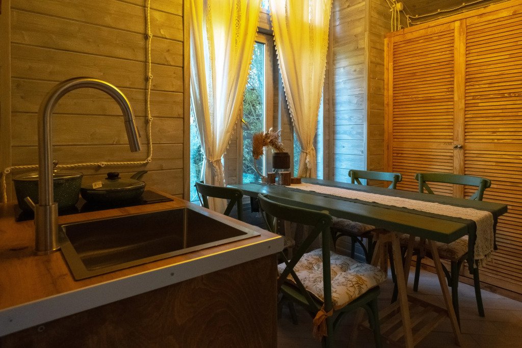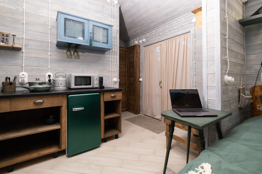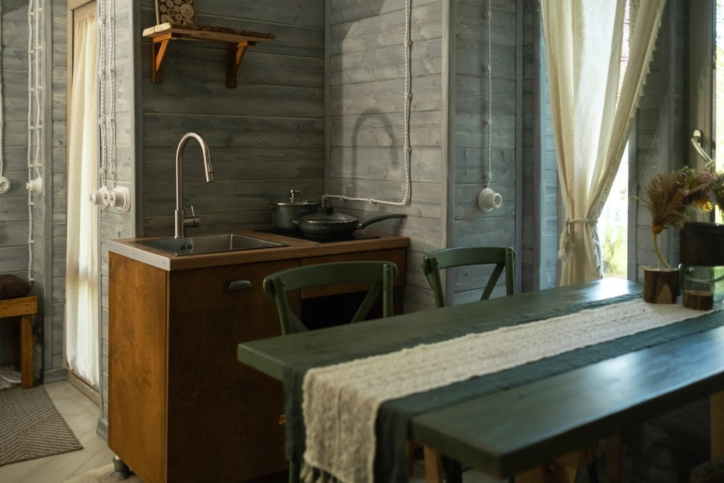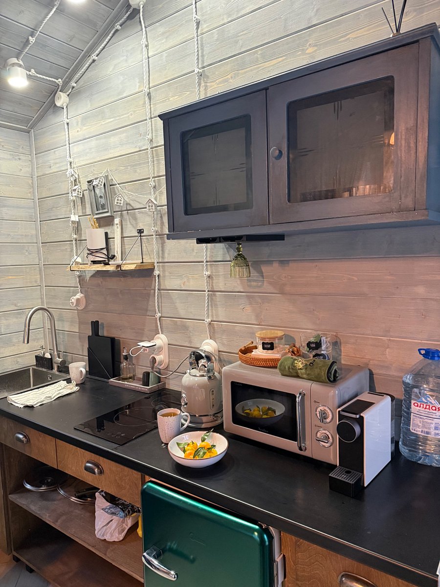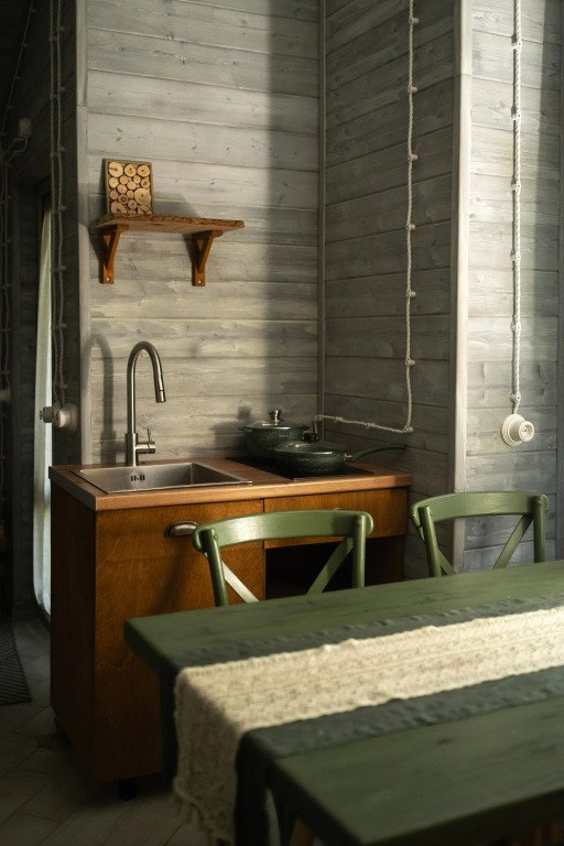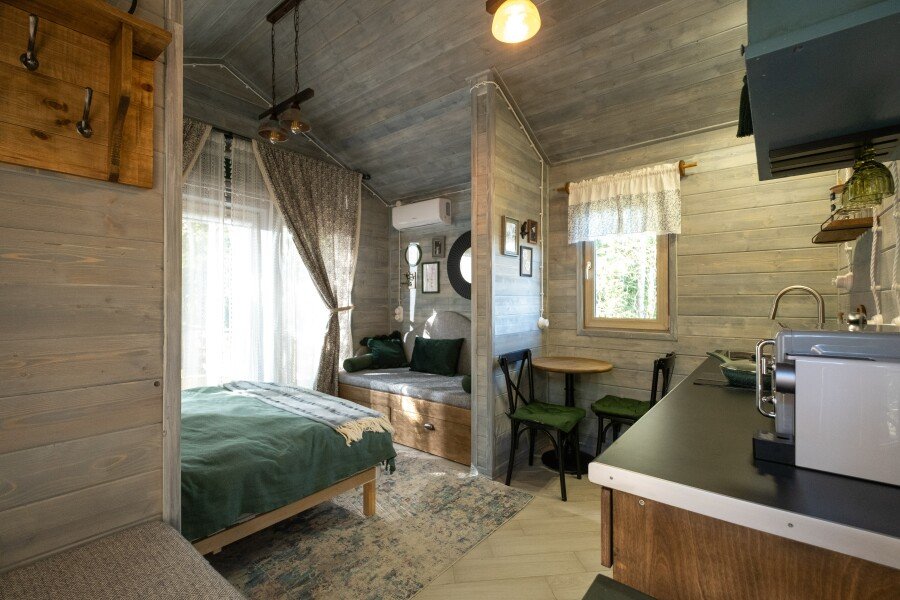 В каждом домике есть закрытая веранда и гриль для вечерних посиделок. А на кухне — все необходимое, чтобы приготовить любое блюдо, которое вам захочется.