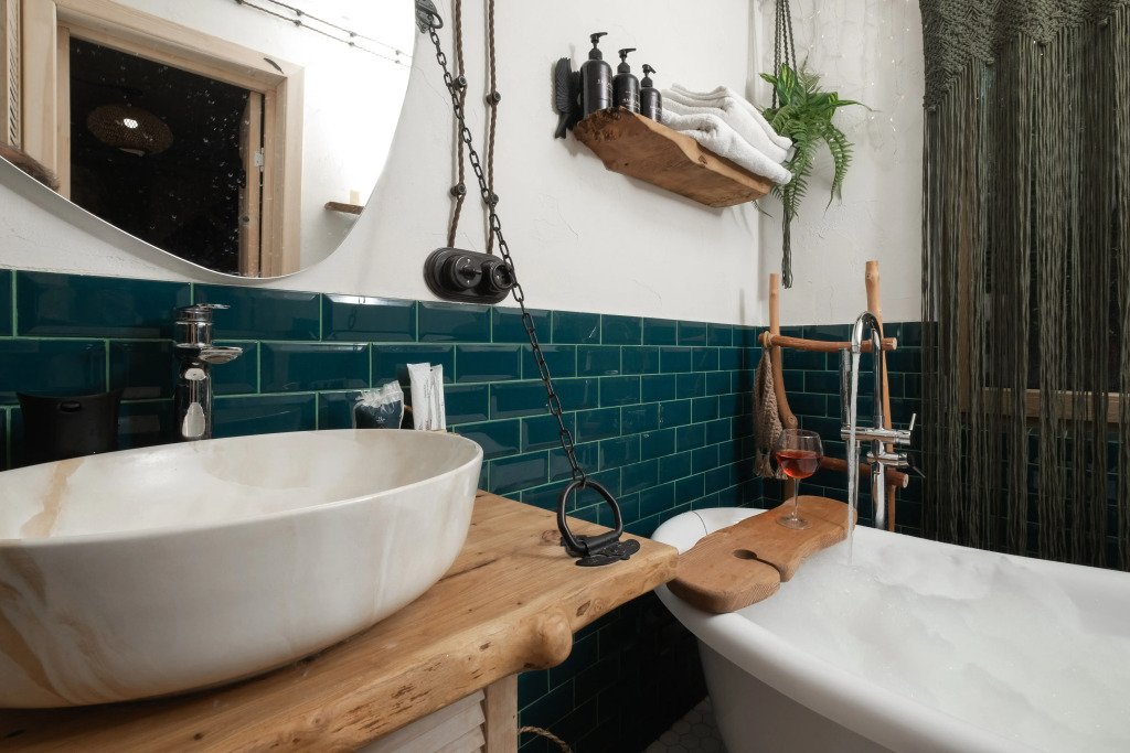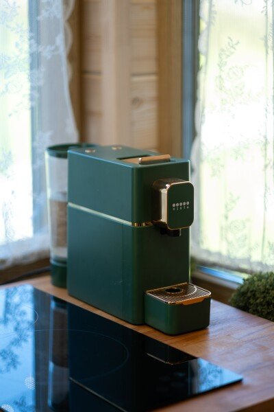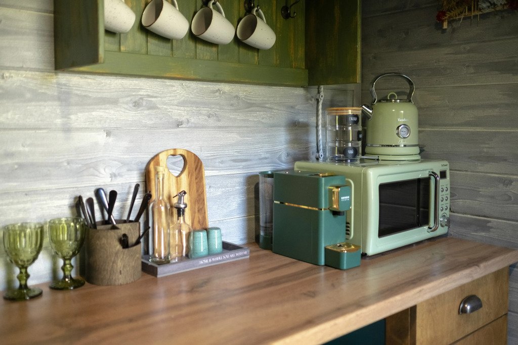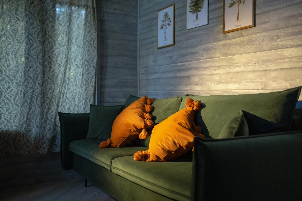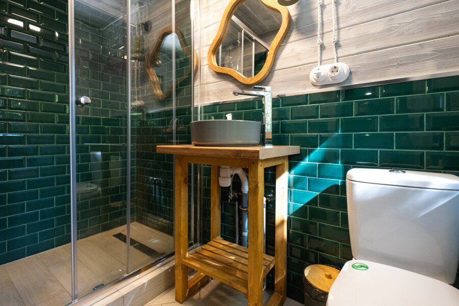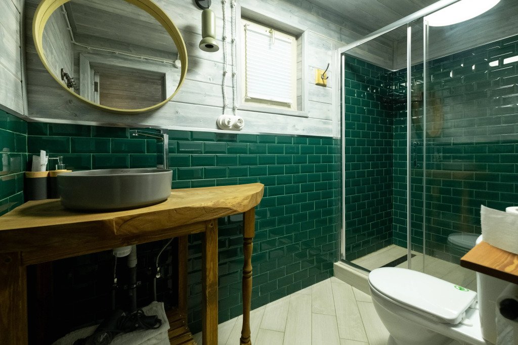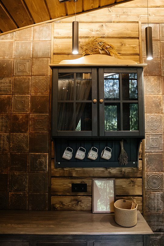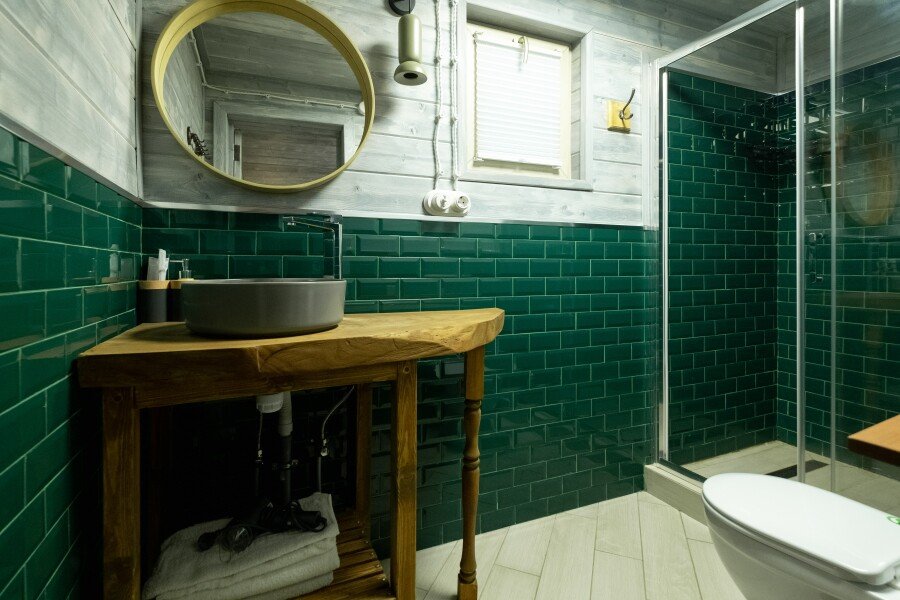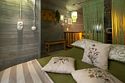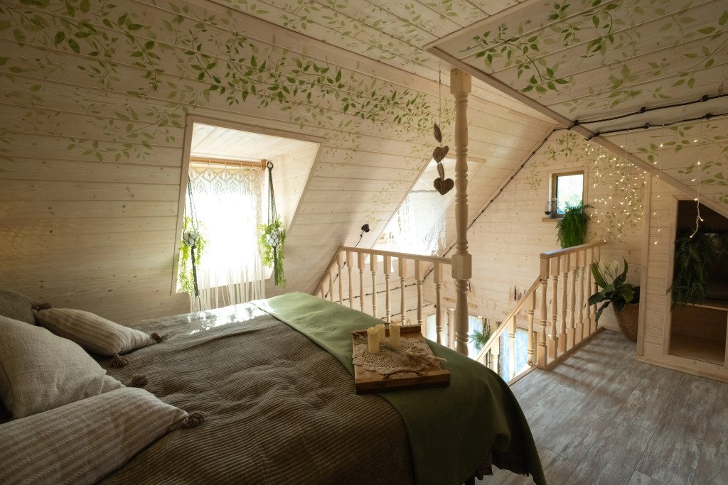 Салатово-зеленые мотивы и древесные элементы создают уникальную атмосферу.