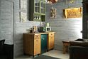 Серо-синие и изумрудные акценты, тепло дерева создают атмосферу загадки и уюта.