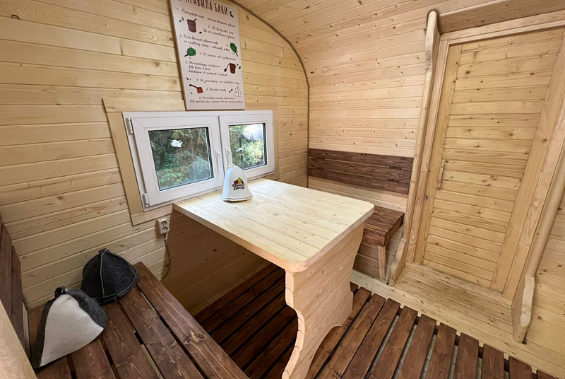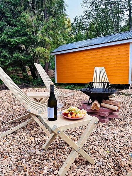 В глэмпинге есть возможность прогуляться в лесу по эко-тропе до реки, окунуться в купель фурако с дровяным подогревом или попариться в бане. В светлое время суток можно отдохнуть или позагорать, а в тёмное время организовать кинопоказ у костра.