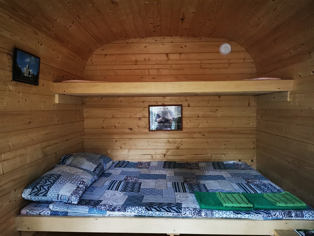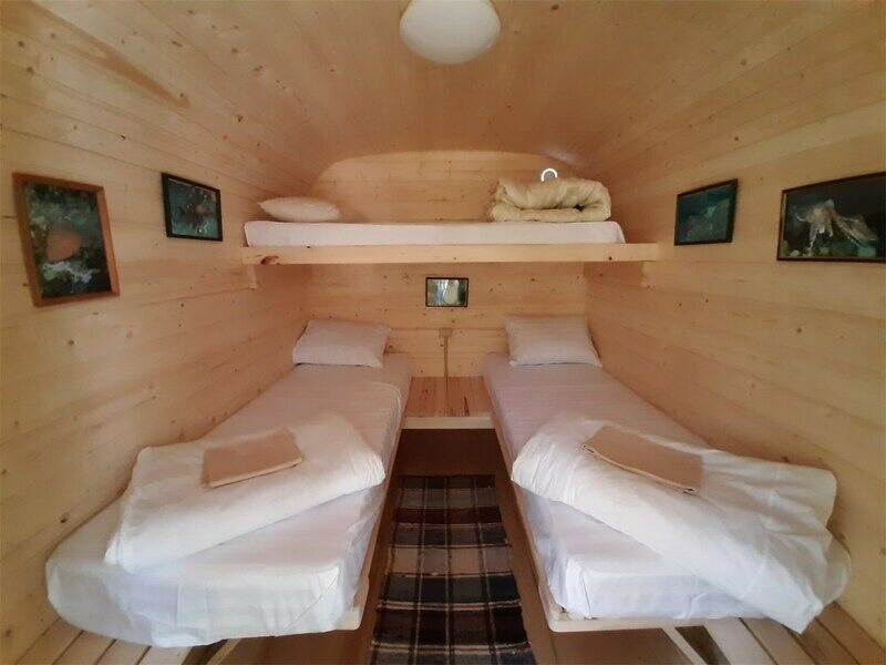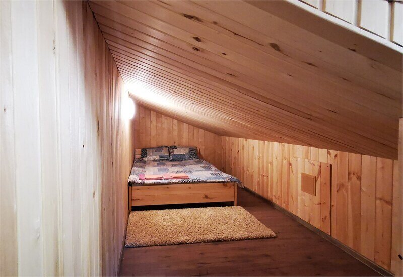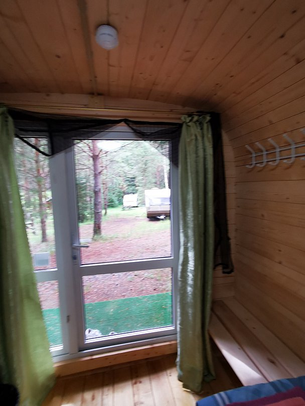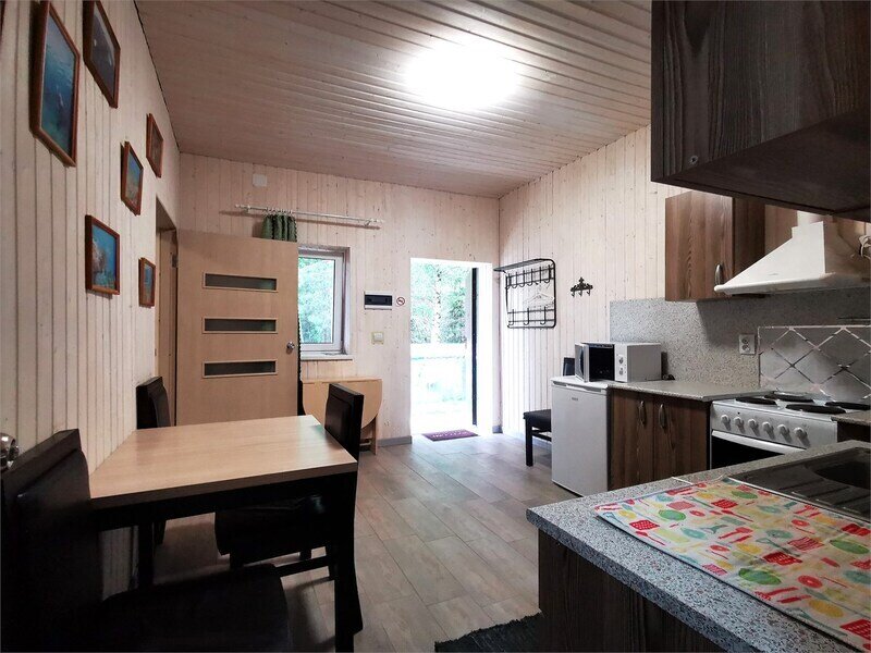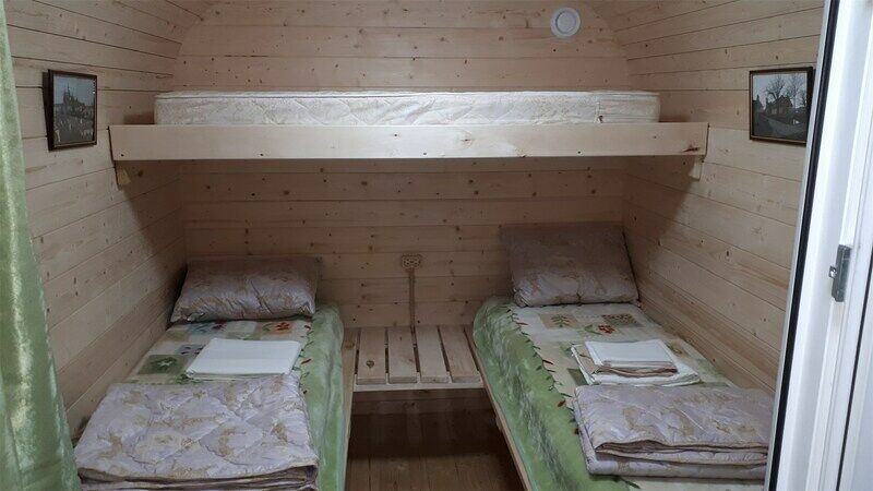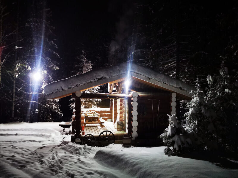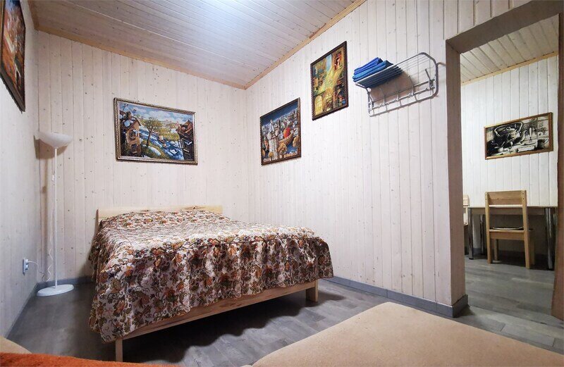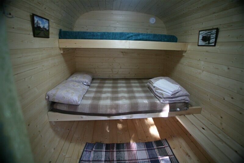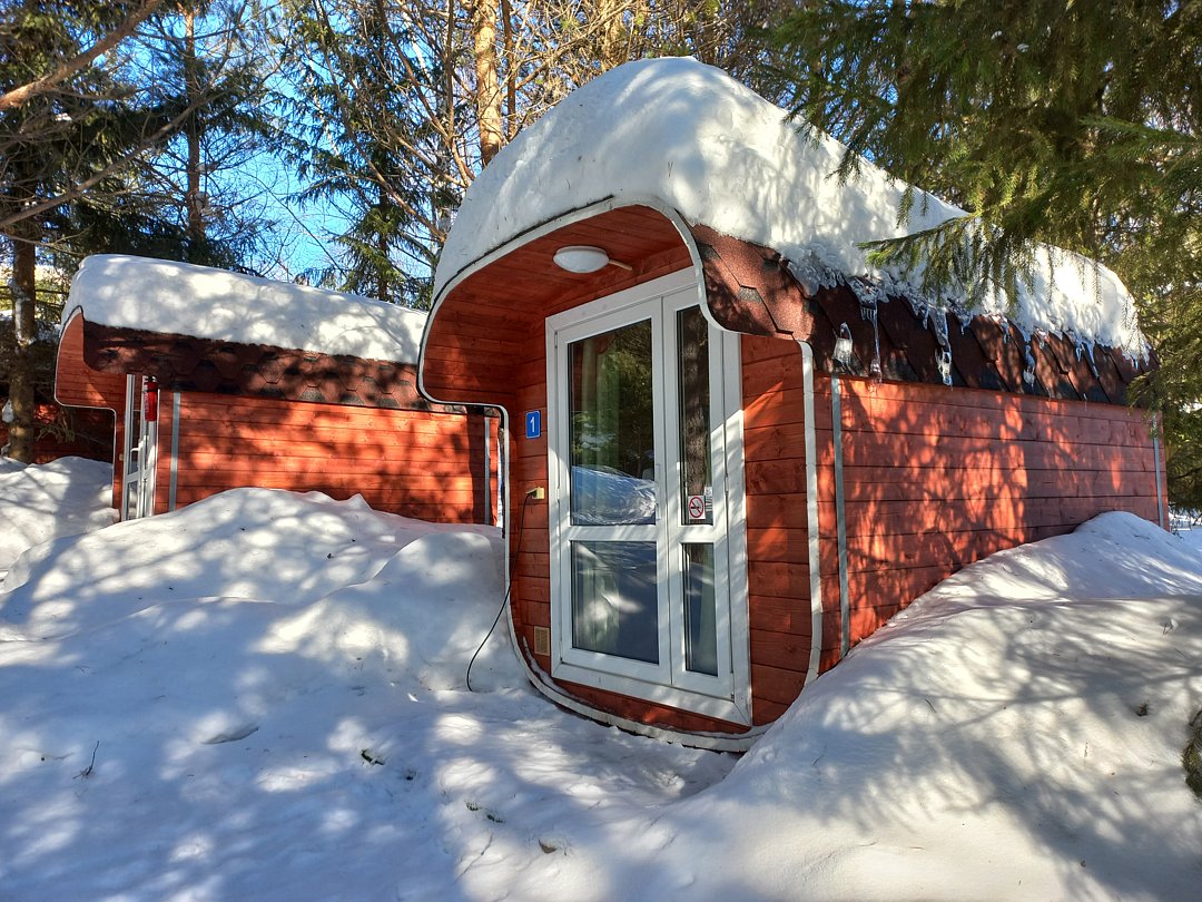 Уютный домик с живописным видом на лес. В нём есть отопление, освещение, полки и вешалка. Гости могут пользоваться общей кухней, гостиной, а также общими душевыми и санузлами. Сауна, баня, прачечная, сушка белья и мангалы предоставляются за отдельную плату.