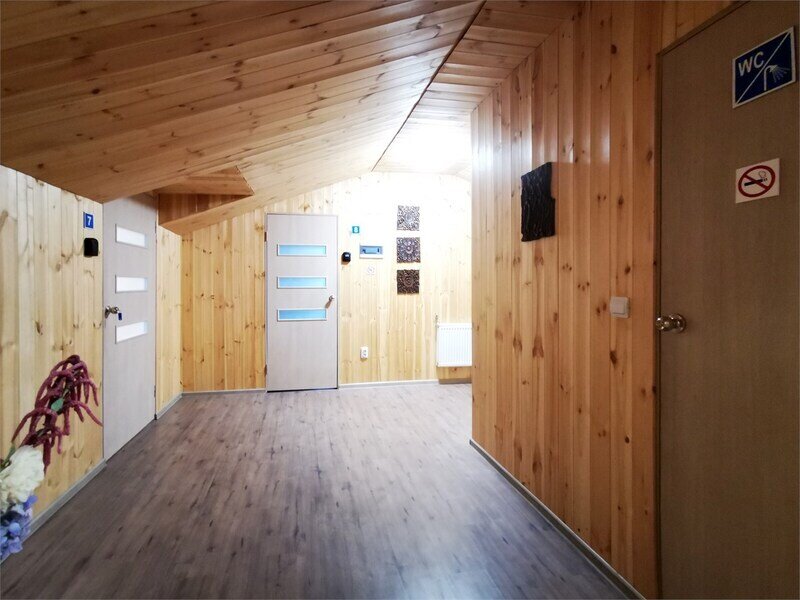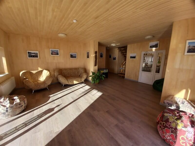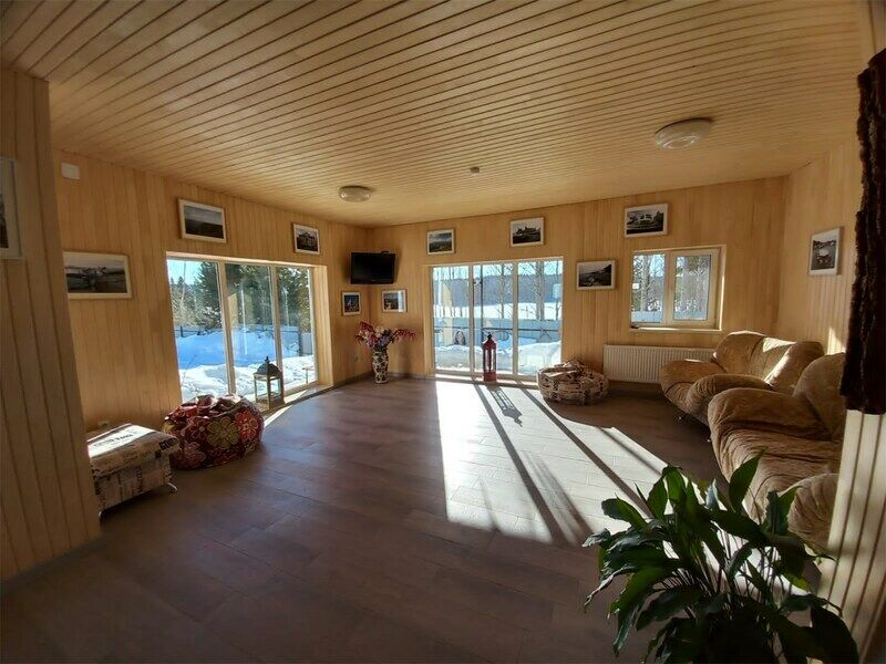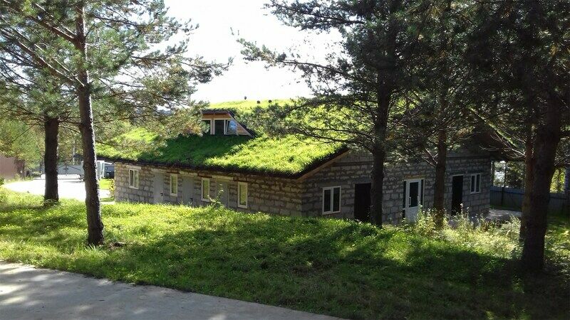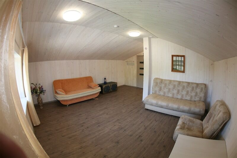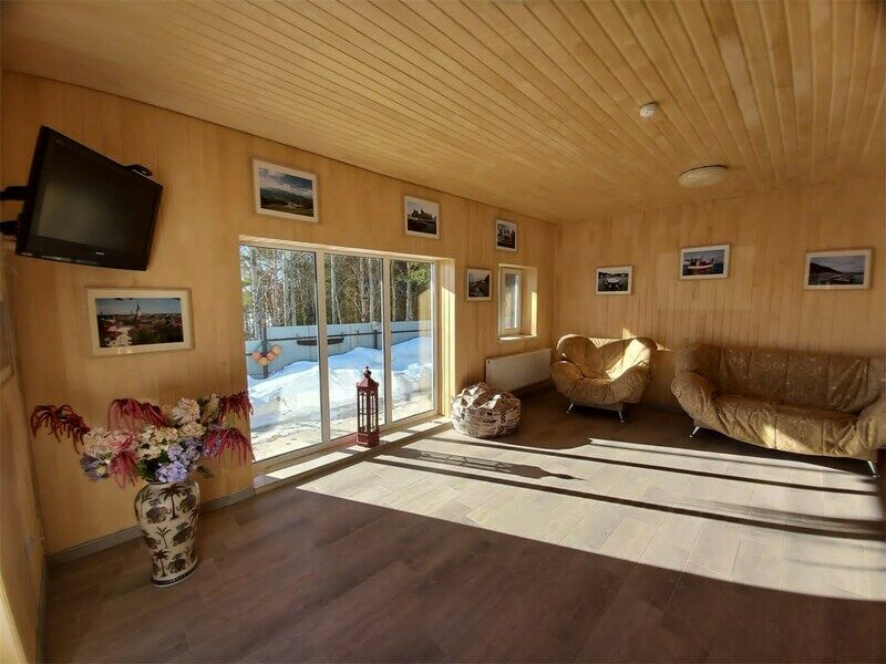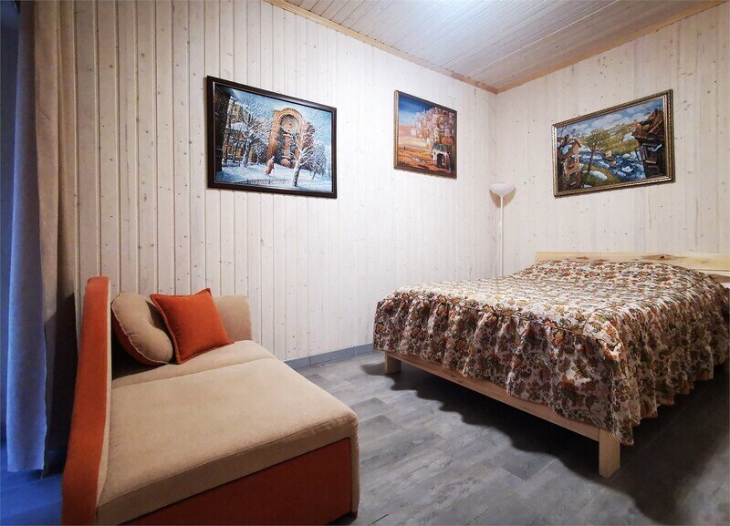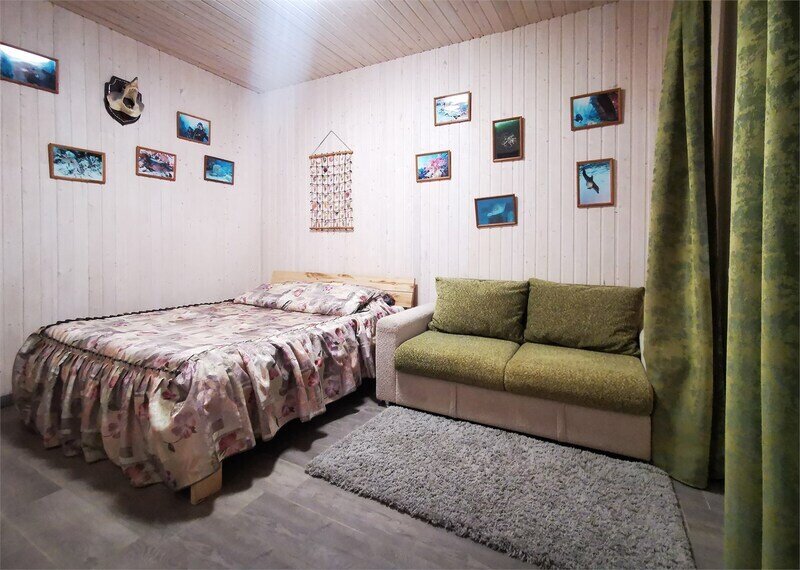 Есть общая гостиная, с/узел и просторная прихожая. Из окна красивый вид на зеленую крышу и пруд. Двухместные спальные кровати находятся в отдельных нишах. В распоряжении гостей: общая кухня, гостиная, душевые, сан.узлы. Сауна, баня, прачечная, сушка белья, мангалы -оплачиваются дополнительно.