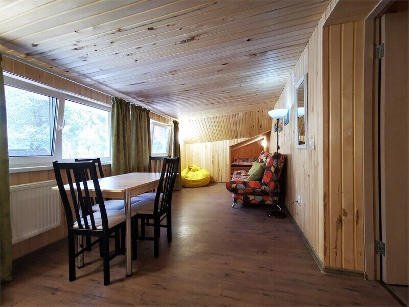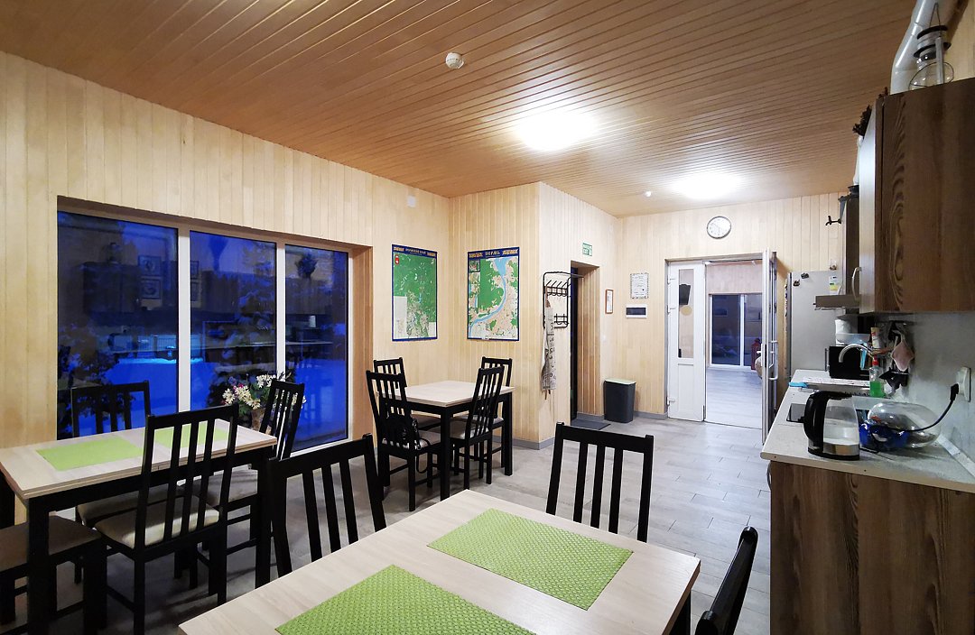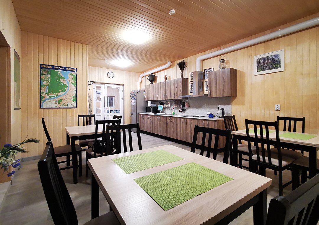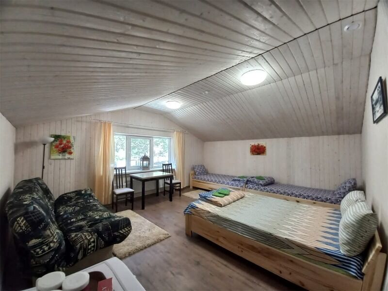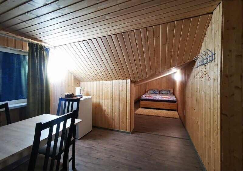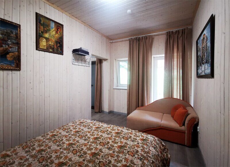 В номере есть стулья, стол-трансформер, вешалка. Отдельный вход с улицы. Из окна открывается вид на лес. В распоряжении гостей: общая кухня, гостиная, душевые, сан.узлы. Сауна, баня, прачечная, сушка белья, мангалы -оплачиваются дополнительно.