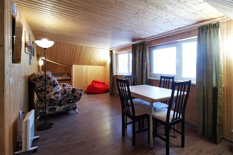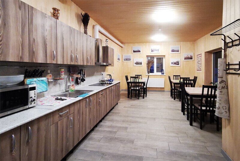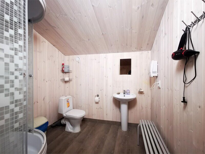 В домике имеется отопление и освещение, а также полки и вешалка для одежды. Гости могут бесплатно пользоваться общей кухней, гостиной, душевыми и санузлами. Сауна, баня, прачечная, сушка белья и мангалы предоставляются за дополнительную плату. В домике есть отопление, освещение, полки, вешалка. В распоряжении гостей бесплатно - общая кухня, гостиная, душевые, санузлы. Сауна, баня, прачечная, сушка белья, мангалы - оплачиваются дополнительно.