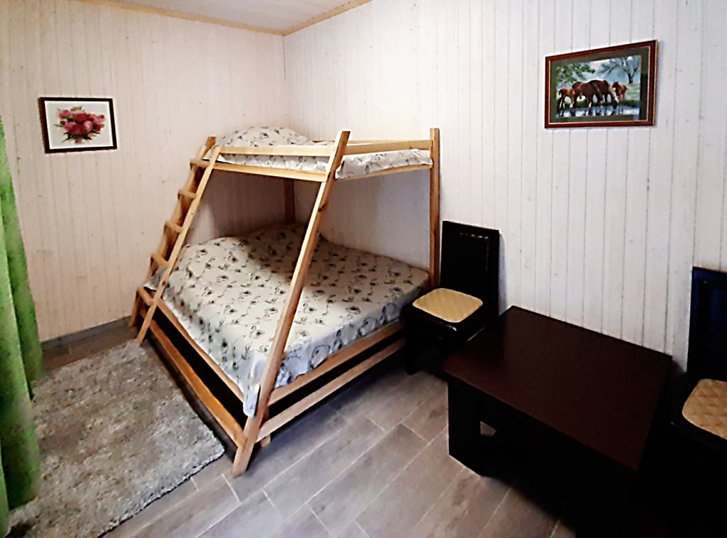 двухъярусная кровать (3 односпальных места:2 внизу + 1место на верхнем ярусе). Есть возможность нижний ярус превратить в двухспальную кровать