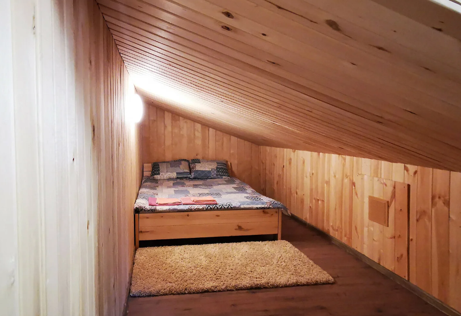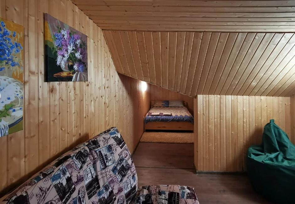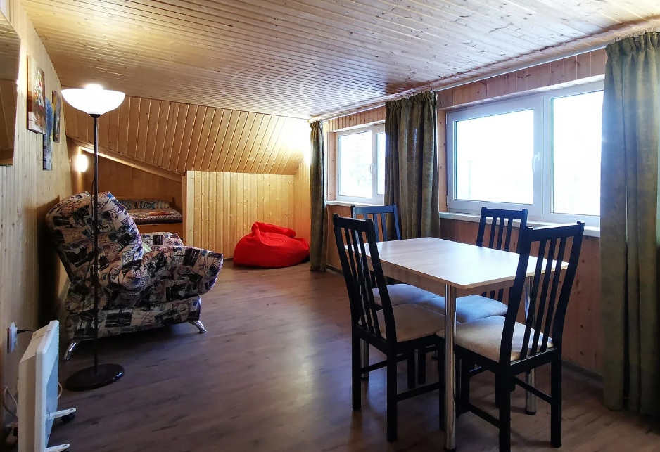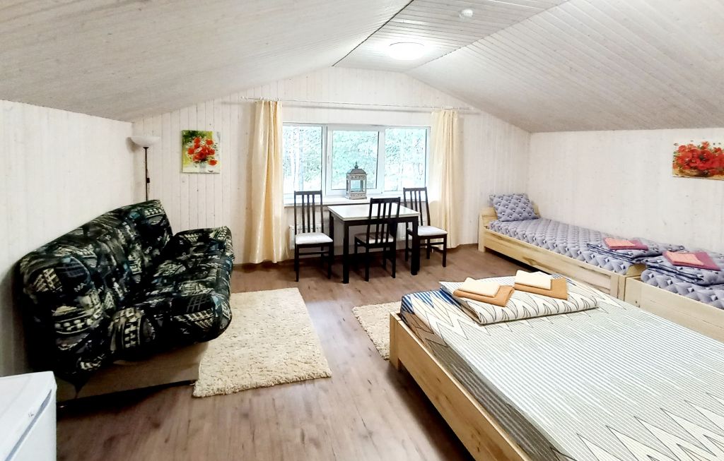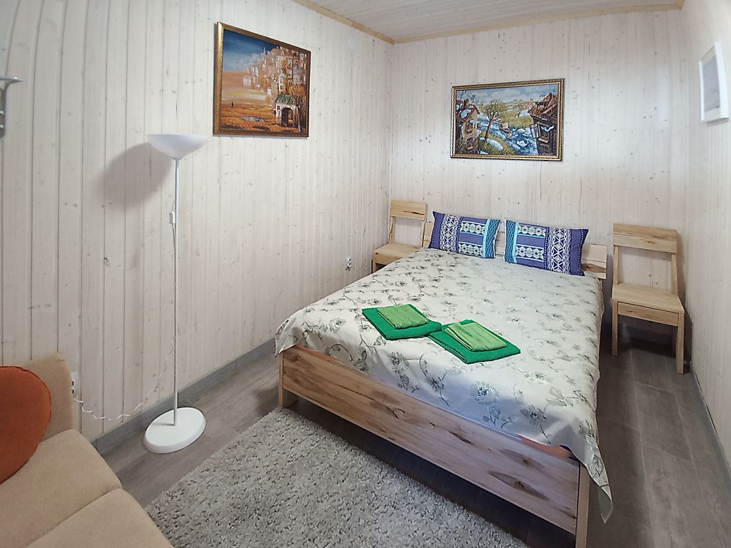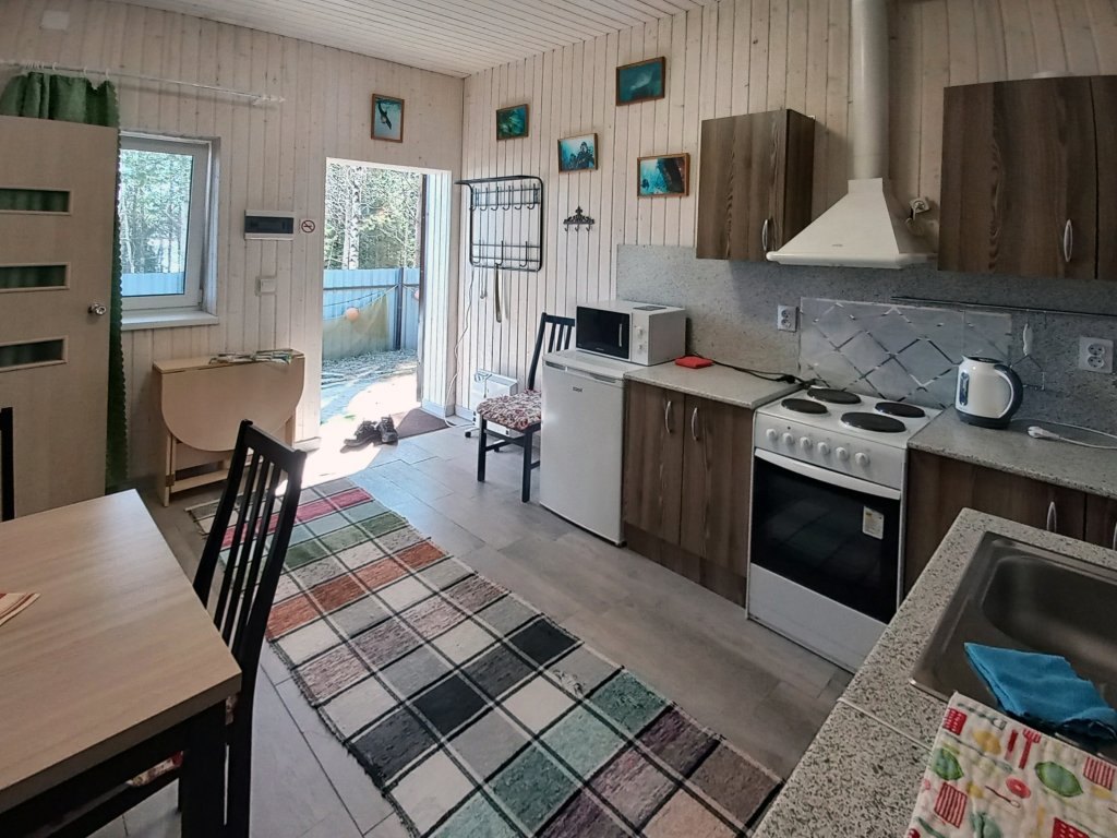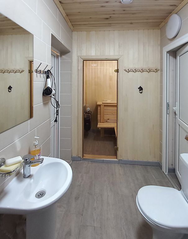 двуспальная кровать, двуспальный диван, собственая кухня и санузел. Сауна, баня, прачечная, сушка белья, мангалы - оплачиваются дополнительно.