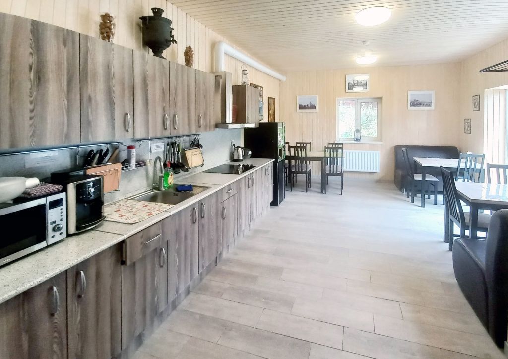 Холодильник. В распоряжении гостей: общая кухня, гостиная, душевые, сан.узлы. Прачечная, сушка белья, баня, кухня, хол общего пользования.