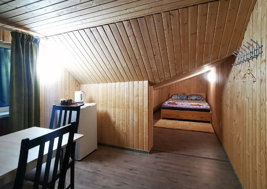 В домике есть отопление, освещение, полки, вешалка. В распоряжении гостей: общая кухня, гостиная, душевые, сан.узлы. Сауна, баня, прачечная, сушка белья, мангалы -оплачиваются дополнительно.