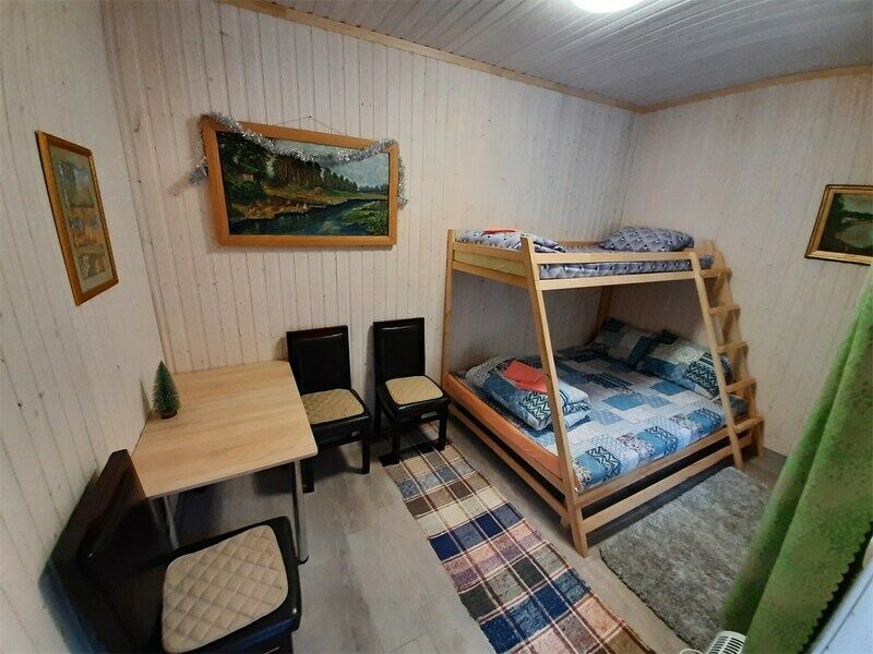 3-х местный семейный номер с двухъярусной кроватью (двухспальное место + место на верхнем ярусе). По запросу в номере может устанавливаться дополнительное спальное место (раскладушка с матрасом).