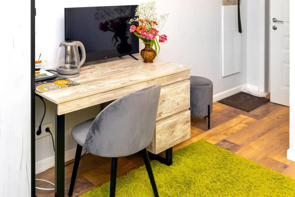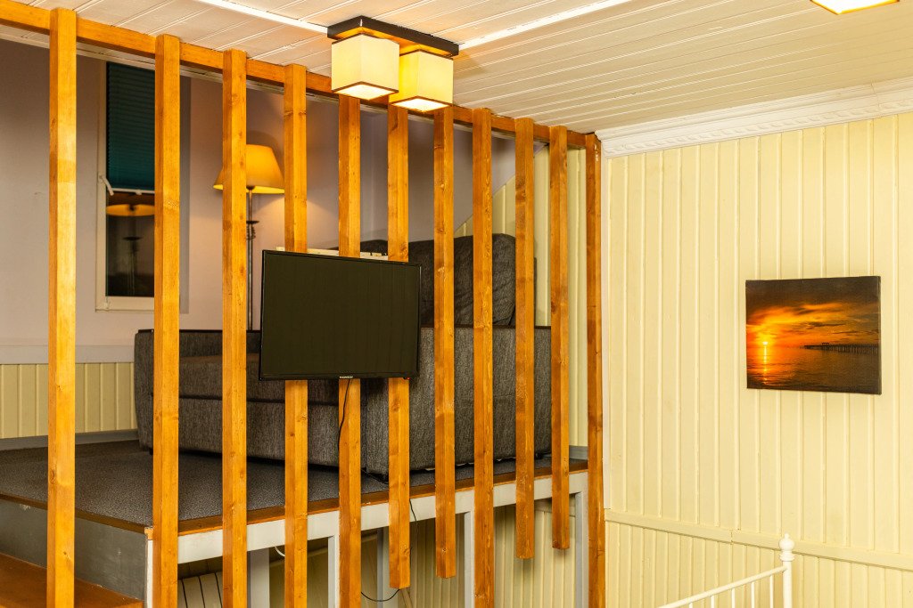 В номере вы найдёте телевизор. Оснащение зависит от выбранной категории номера.