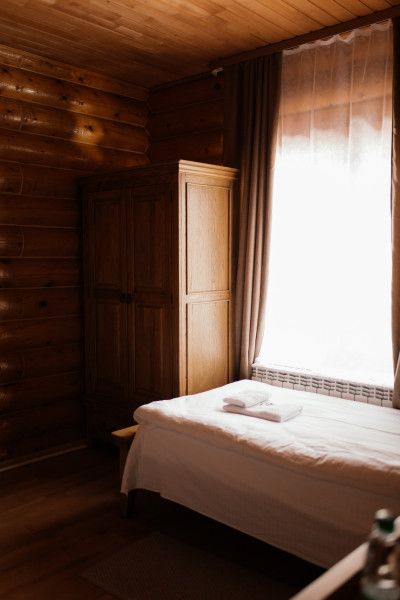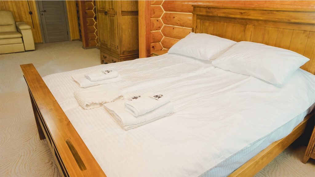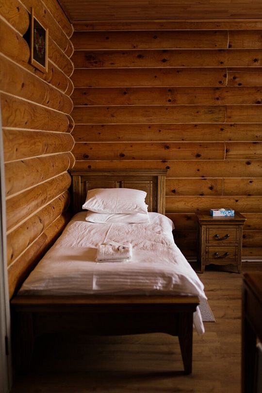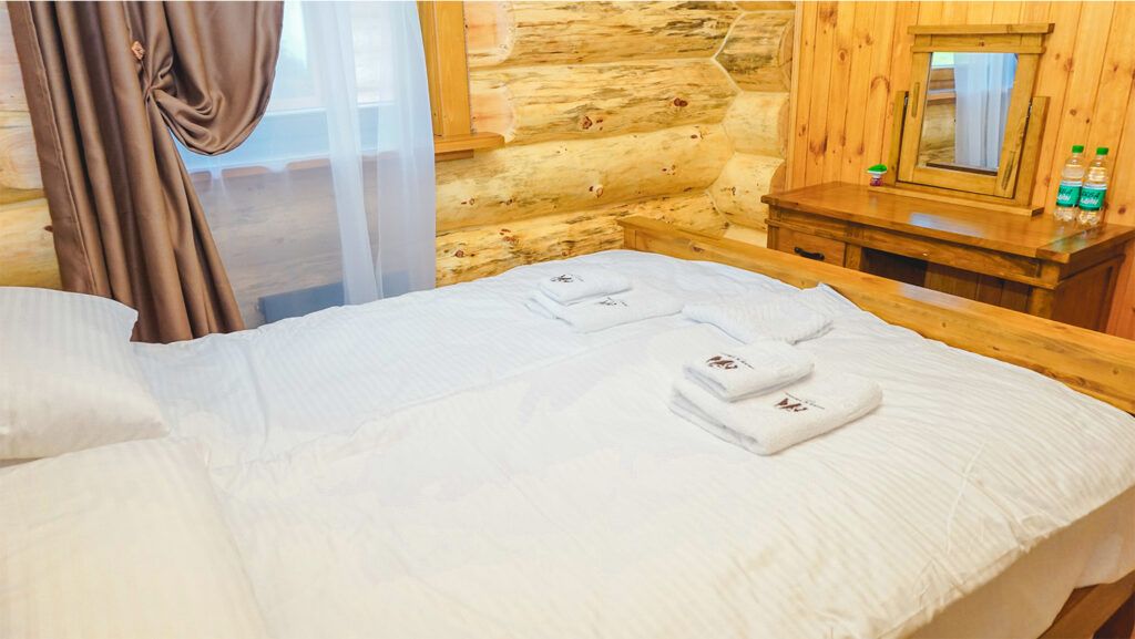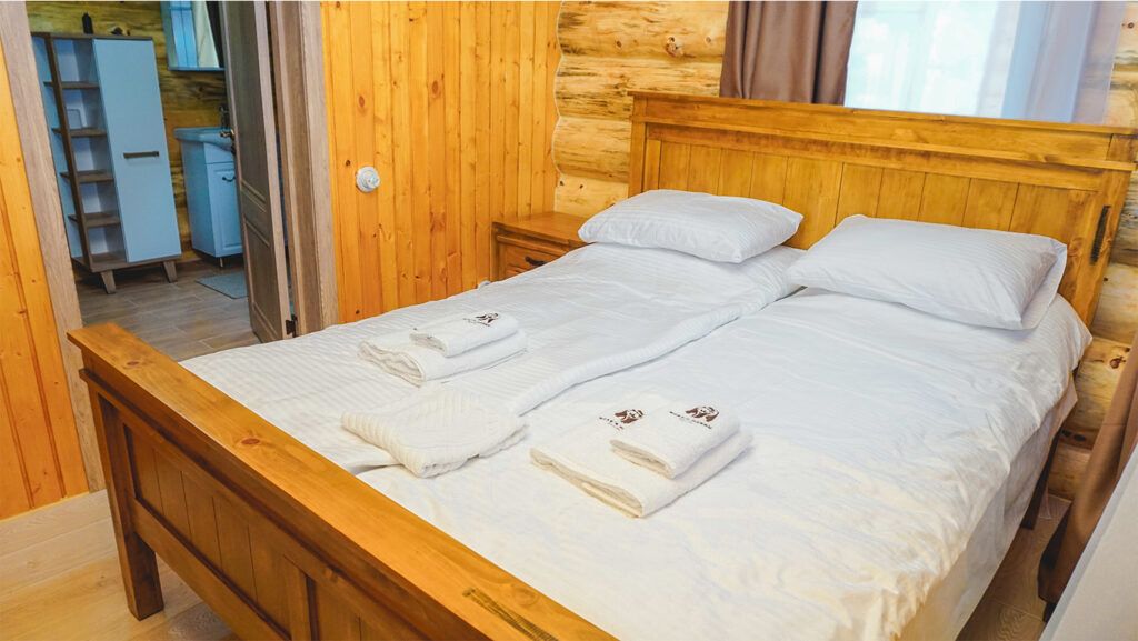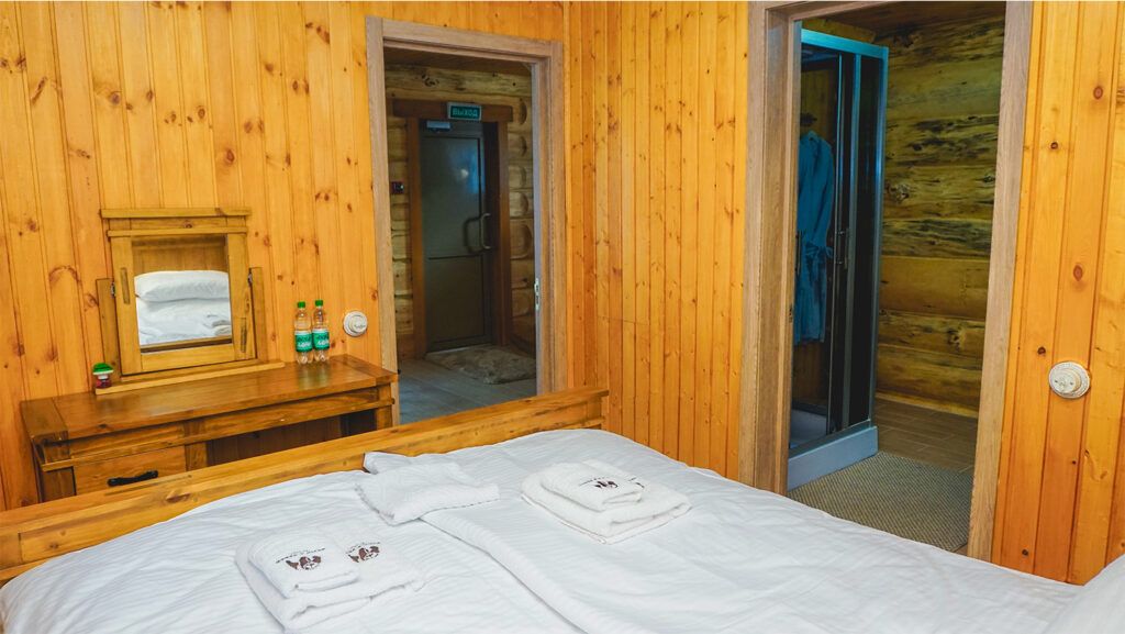 На турбазе возможно дневное пребывание и размещение с ночевкой в благоустроенных номерах разных категорий. Номера расположены в деревянных гостевых домах.