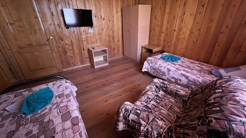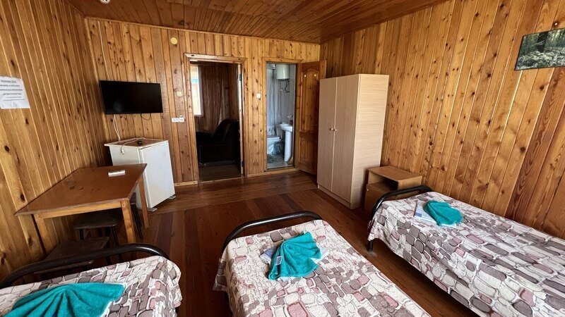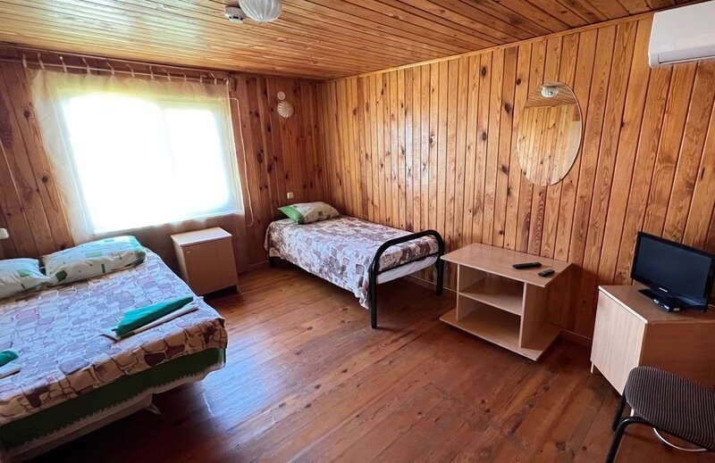 Внутри номер оснащен всем необходимым для комфортного отдыха: две односпальные кровати, стол, холодильник и душ с туалетом общий. Комфортному сну будет способствовать не только свежий морской воздух. Мы предоставляем бесплатную парковку для вашего автомобиля.