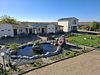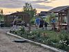 Большой огороженный двор с бассейном, прудом, беседками, мангалами, батутом, качелями, игровой зоной для малышей.