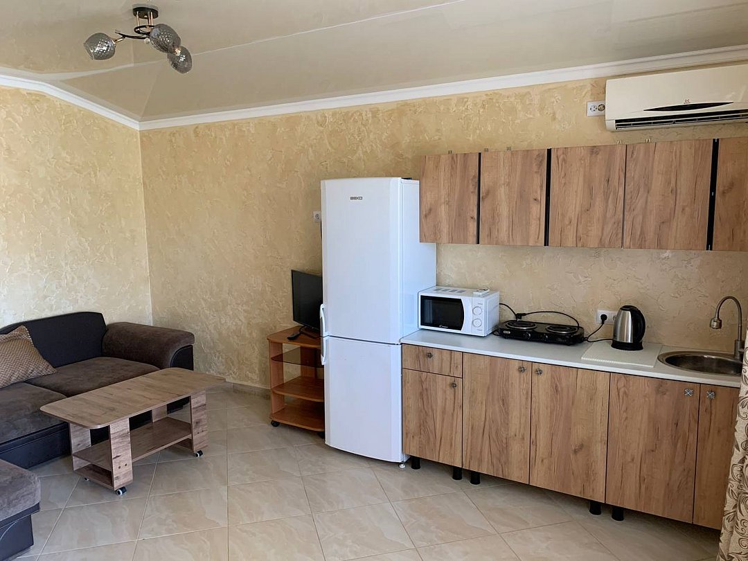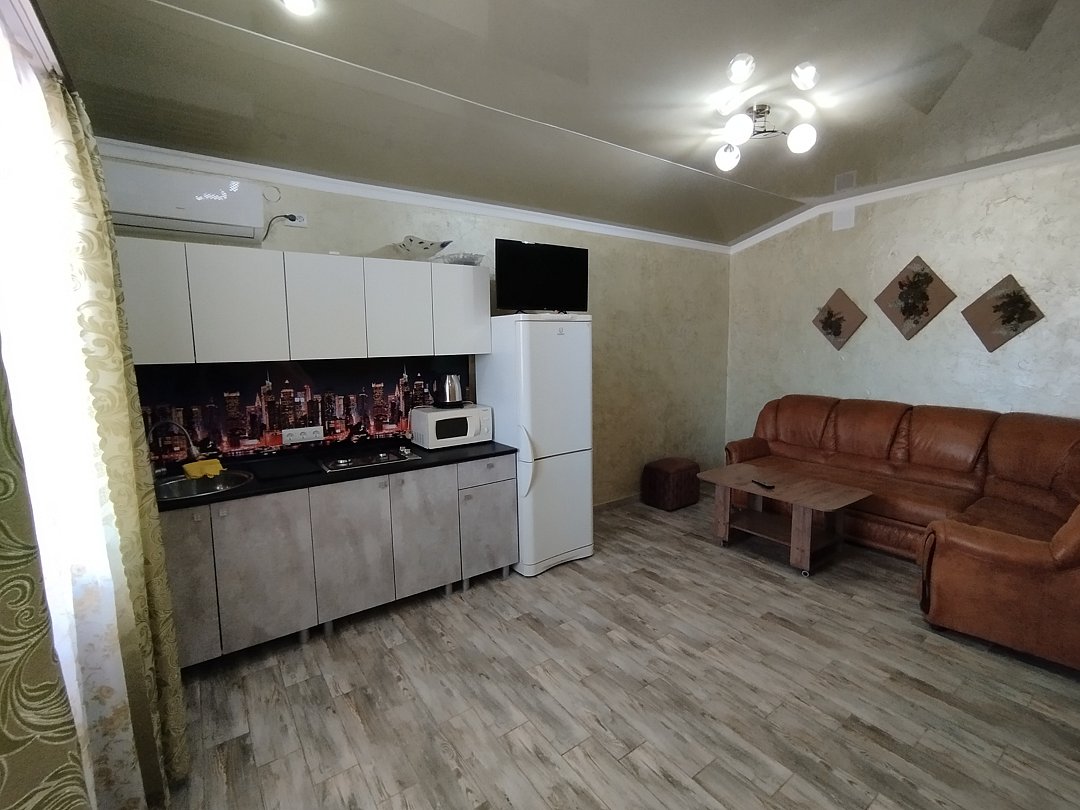 Двухкомнатный номер с кухней и верандой. Расположен в одноэтажном доме.