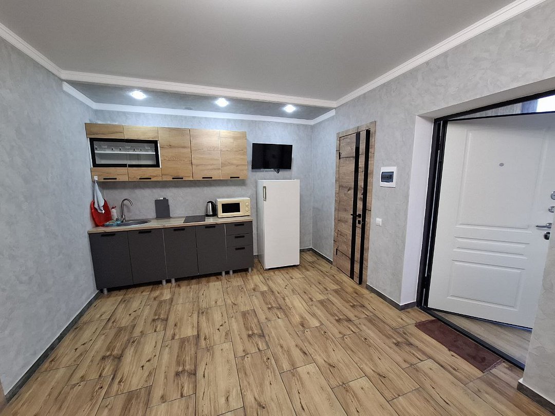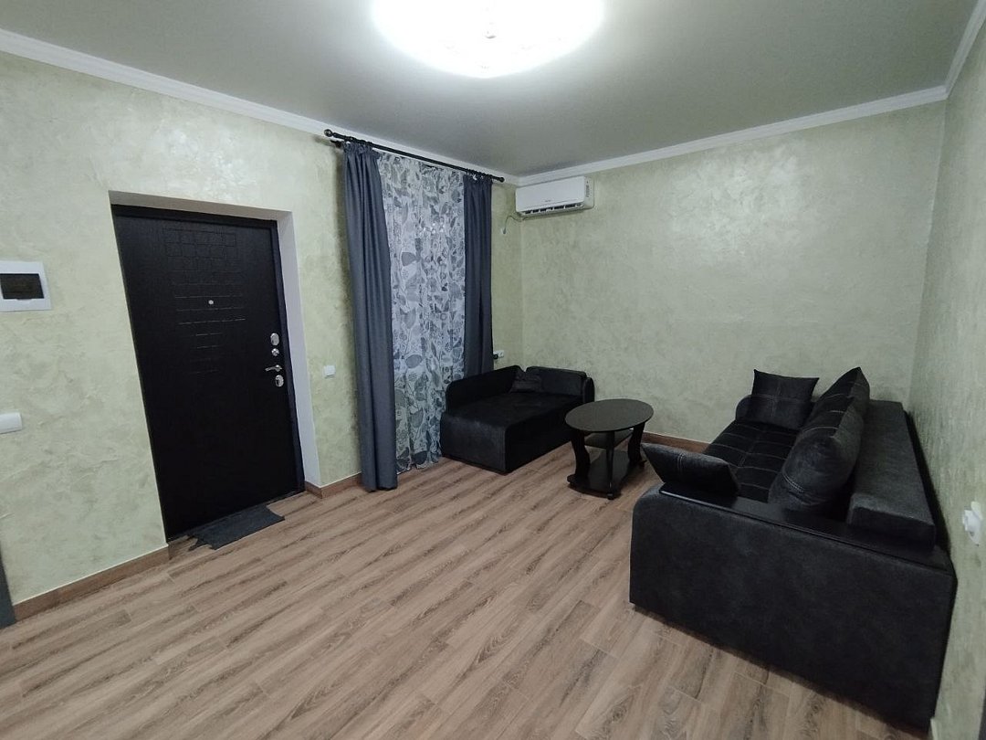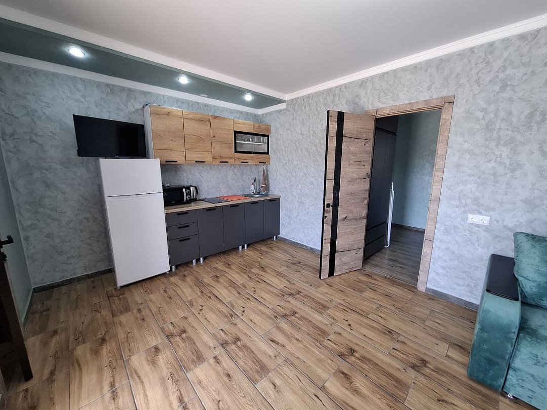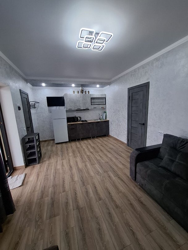 Двухкомнатный номер с кухней и балконом. Находится на втором этаже 2-х этажного дома.