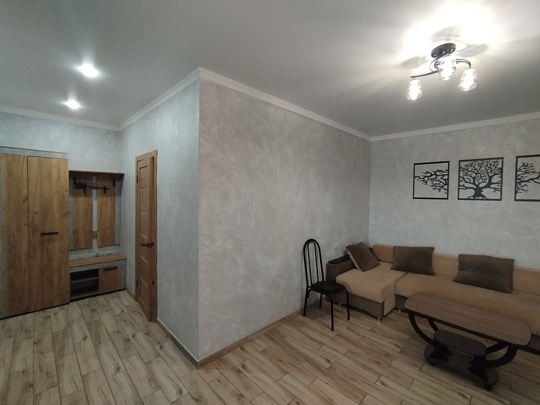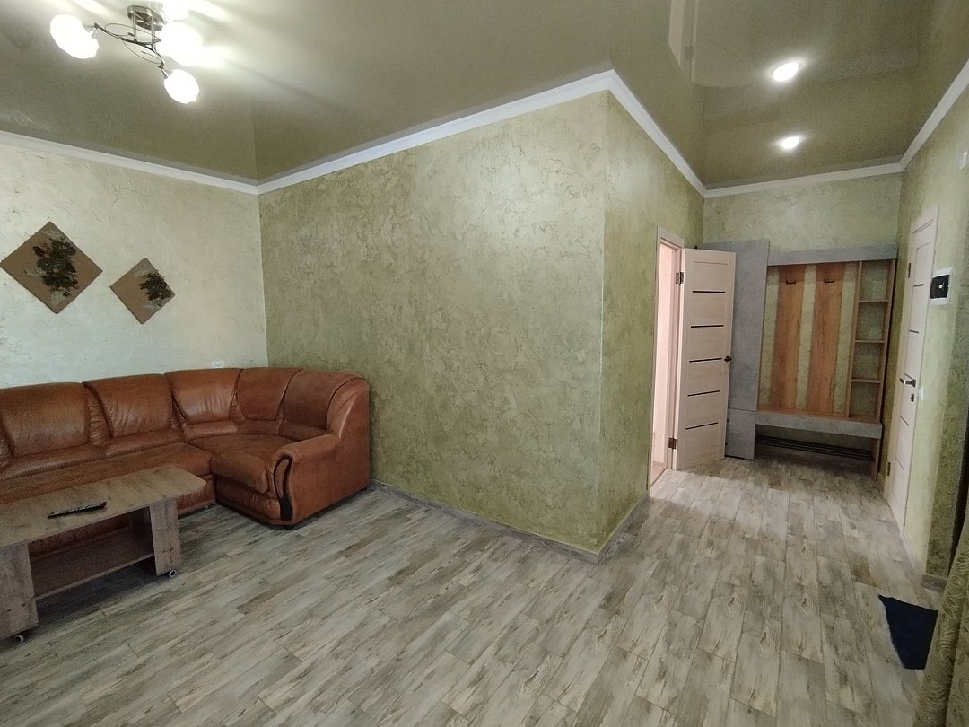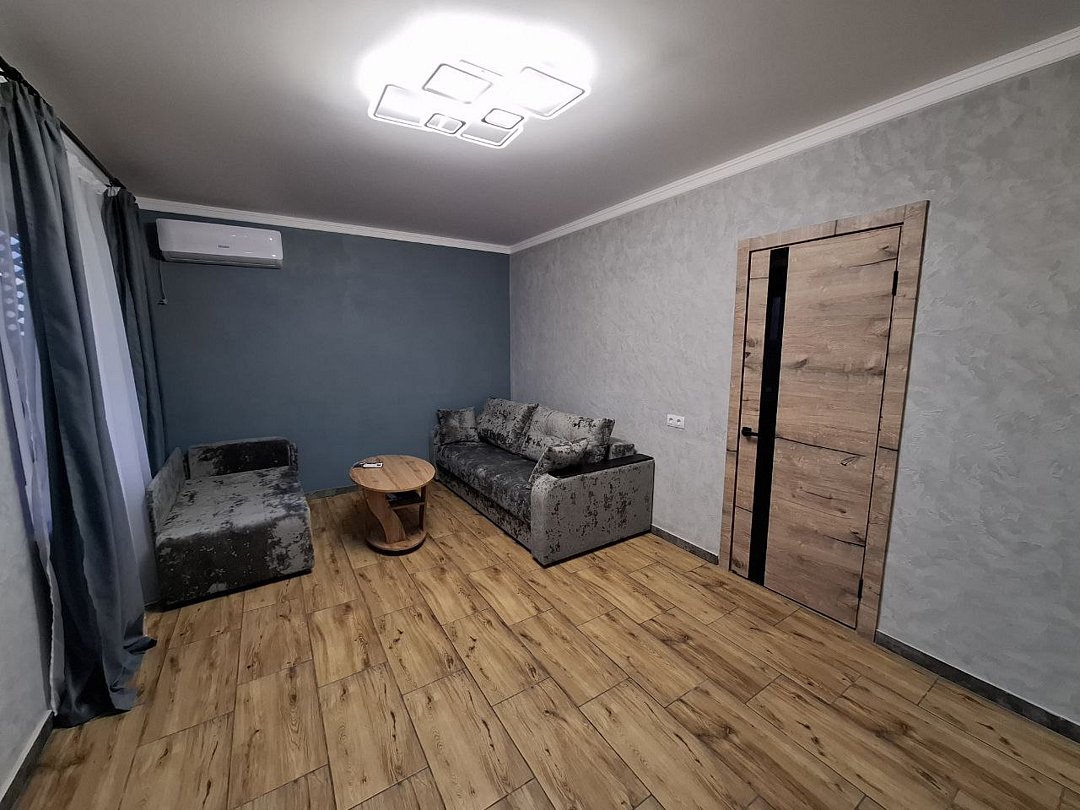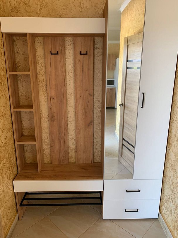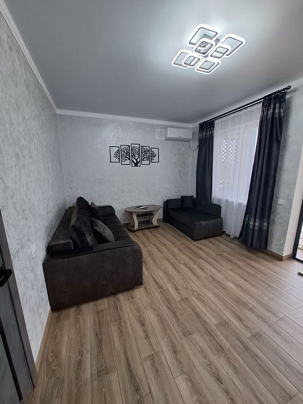 Двухкомнатный номер с кухней и балконом. Находится на втором этаже 2-х этажного дома.