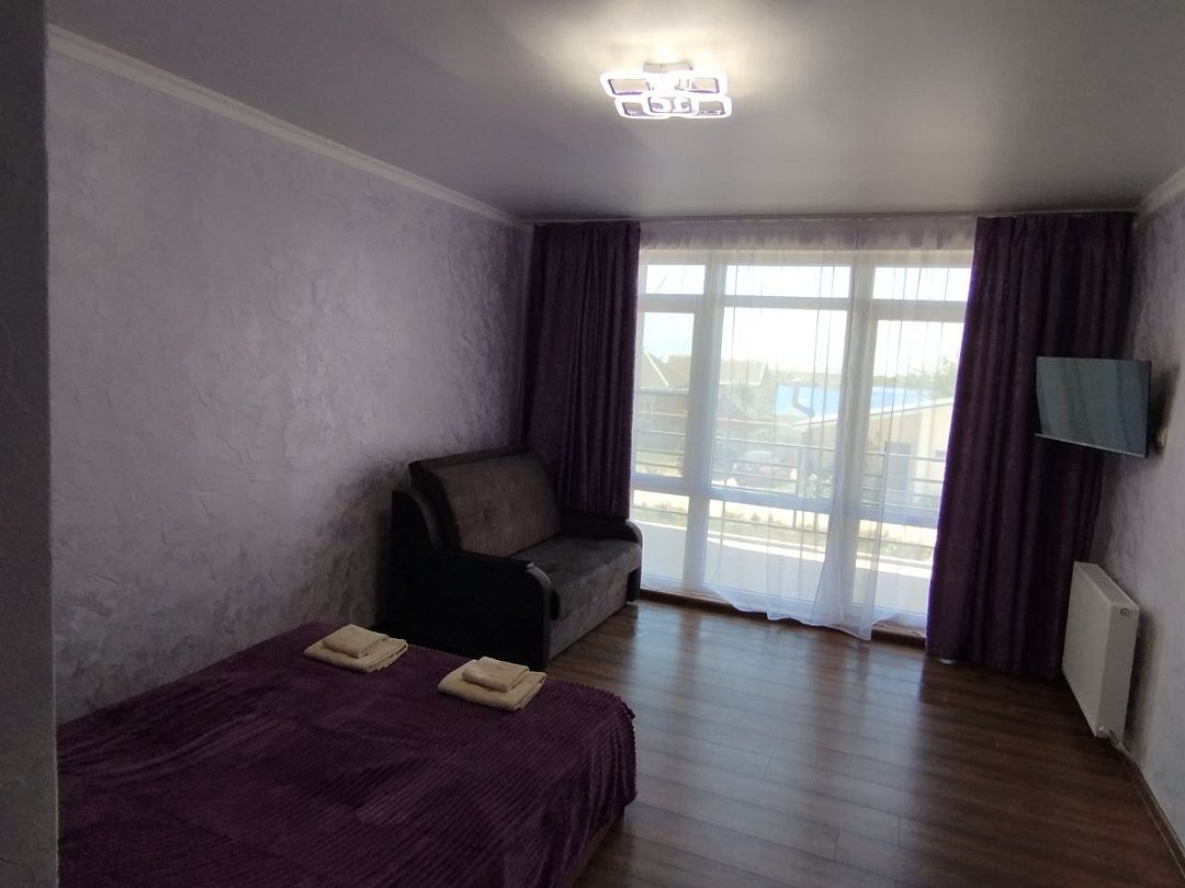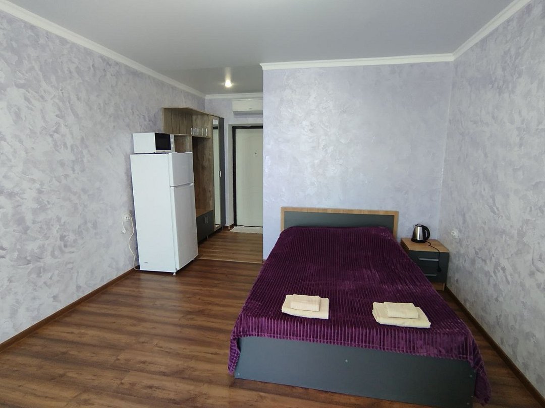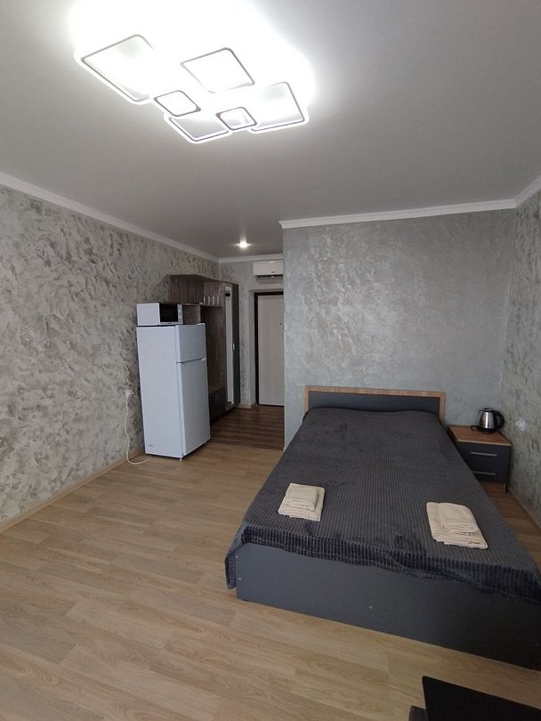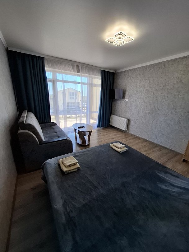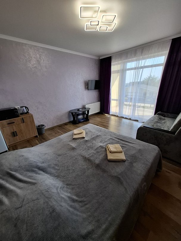 В номере: двуспальная кровать, раскладной диванчик, столик стулья, холодильник, кондиционер, посуда, постель, полотенца, телевизор, чайник, WI fi.
