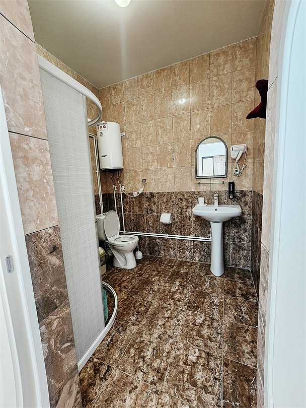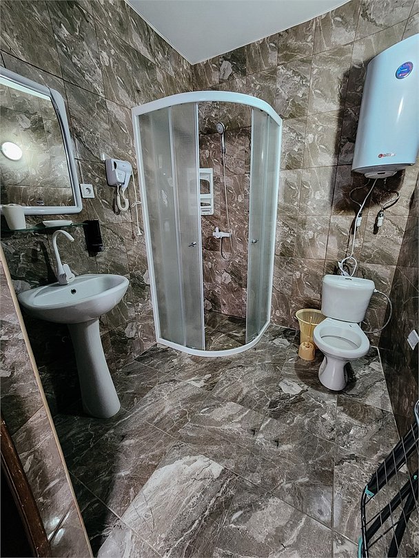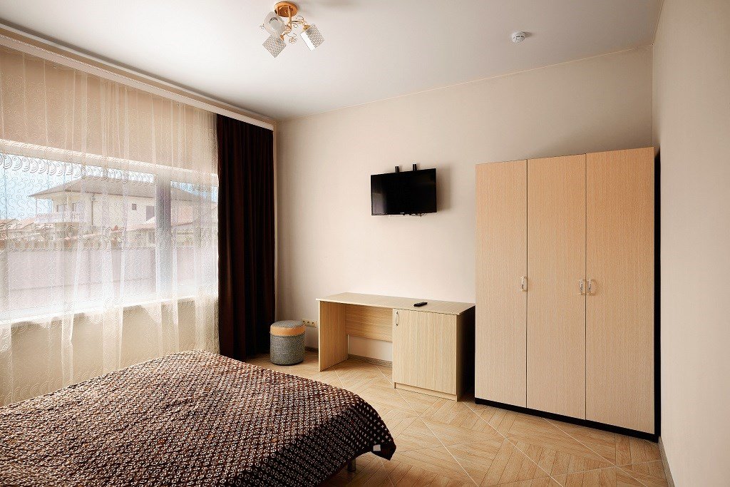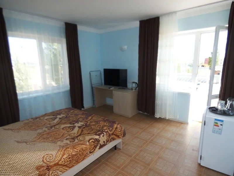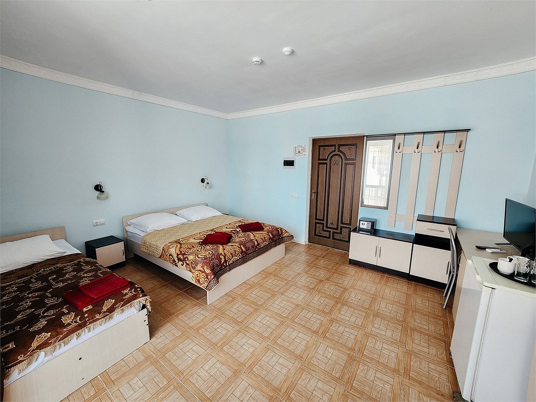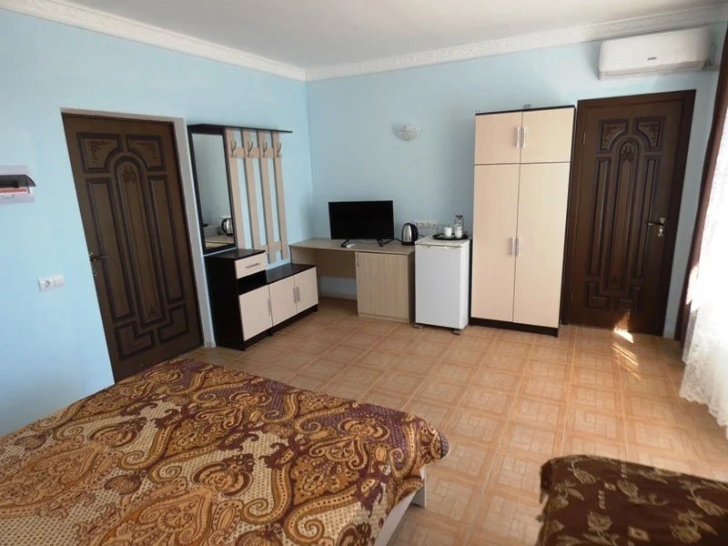 телевизор, Wi-Fi, кондиционер, светильник, фен, ванная комната, душевая кабина, водонагреватель, банные полотенца, косметические средства, балкон, двуспальная кровать, гладильная доска, стулья, шкаф для одежды, вешалки, зеркало, мебельный гарнитур, чайный набор, набор посуды, чайник, раковина, отдельный вход в номер, душ, плиточное покрытие, вид во двор, три полутораспальные кровати, кухонная посуда, стаканы, столовые приборы, стул, тумба, туалетные средства, туалет, сплит-система, мангал, сушилка для белья, цифровое тв, телевизор с плоским экраном, мини-холодильник, москитная сетка, частичный вид на море, номер для некурящих, рабочий стол, уборка номера, набор для приготовления чая и кофе, вешалки-плечикиВ номере
