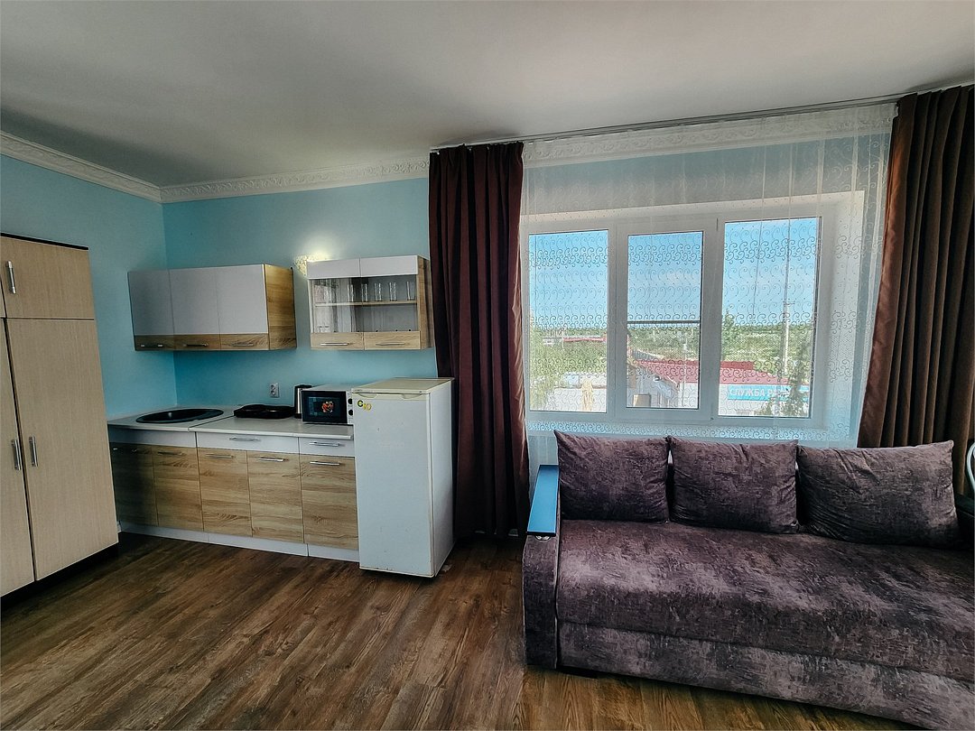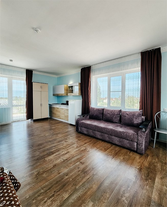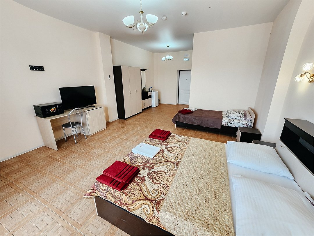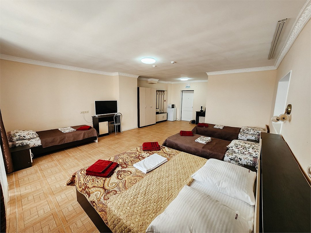 Комфортный четырёхместный номер. В номере есть мини-кухня без плиты, большая лоджия с уличной мебелью.Услуги и удобства
