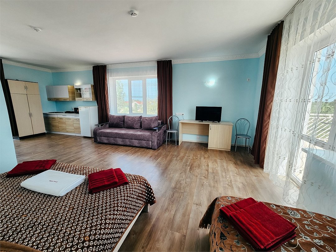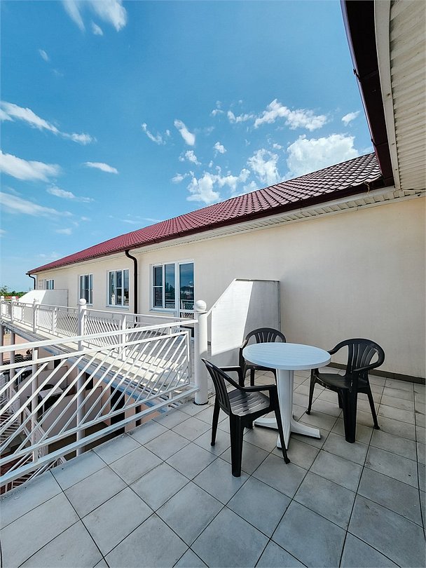Комфортный двухместный номер, большая лоджия с уличной мебелью (стол и стулья), в номере всё необходимое для проживания.Услуги и удобства