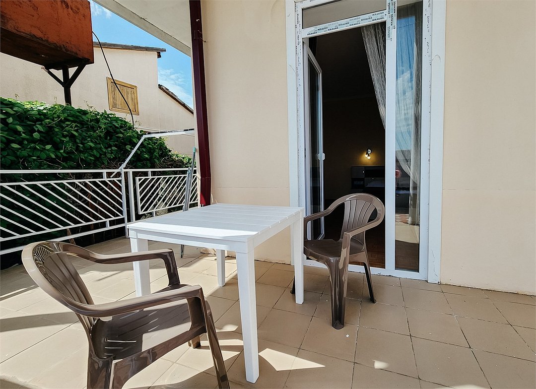 Стандартный номер на пятерых человек, расположенный на первом этаже, вид во двор и частичный вид на море. В номере есть всё необходимое для комфортного проживания, а также прекрасная терраса с уличной мебелью.Услуги и удобства