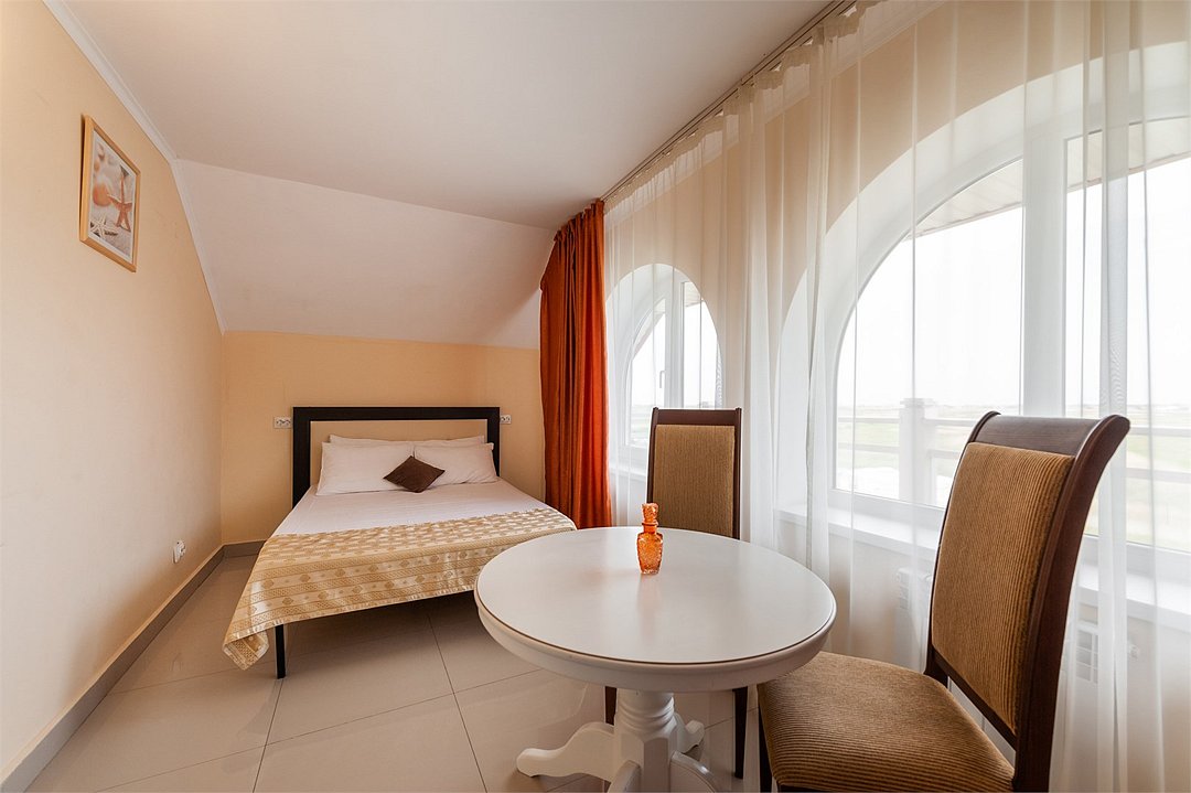 Площадь номеров стандарт 24 м2 с балконом. Номер расчитан на 2 человек. Во всех номерах есть санузел, душ, двуспальная кровать, вешалка, письменный стол, чайный столик со стульями, холодильник, плоский ЖК-телевизор диагональ 30 дюймов, чайник, сплит-система, бесплатный интернет. Также в стоимость номера входит: Обогреваемый бассейн, детская площадка, детская игровая комната с аниматорами, парк аттракционов, анимационные программы для детей и взрослых, вечерние шоу программы, аквааэробика в бассейне и на море, уроки танца, оздоровительные дыхательные упражнения на расцвете, и йога на закате у моря, зона барбекю, охраняемая автостоянка, шезлонги. При отеле есть кафе (система питания "шведский стол") завтрак, обед, ужин оплачивается отдельно, дети до 5 лет - бесплатно в сопровождении взрослых. Недорогие номера в гостиничном комплексе Оптимист на берегу Азовского моря в станице Должанская.Услуги и удобства