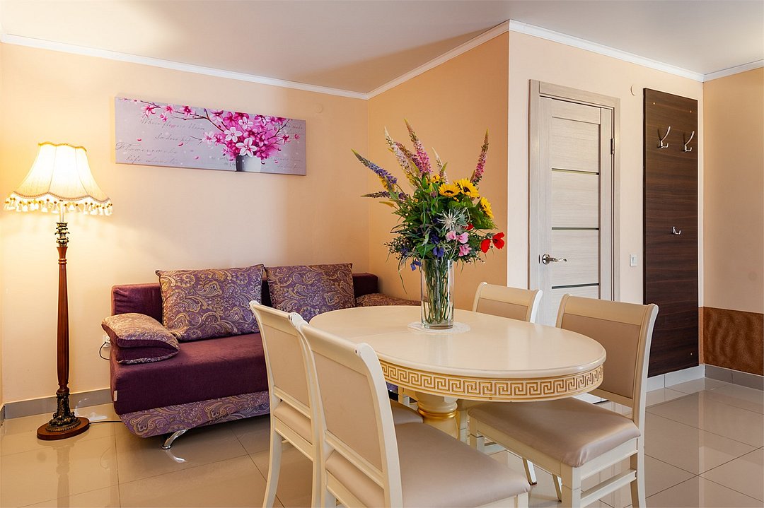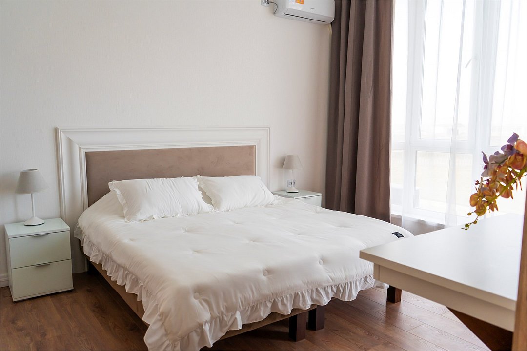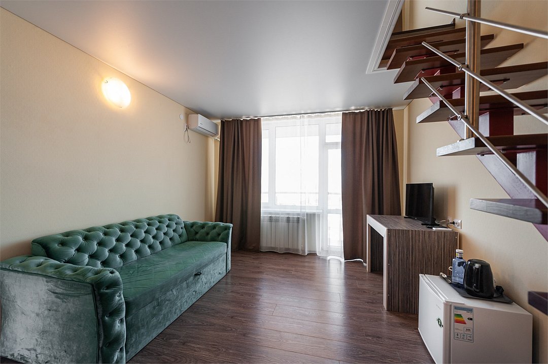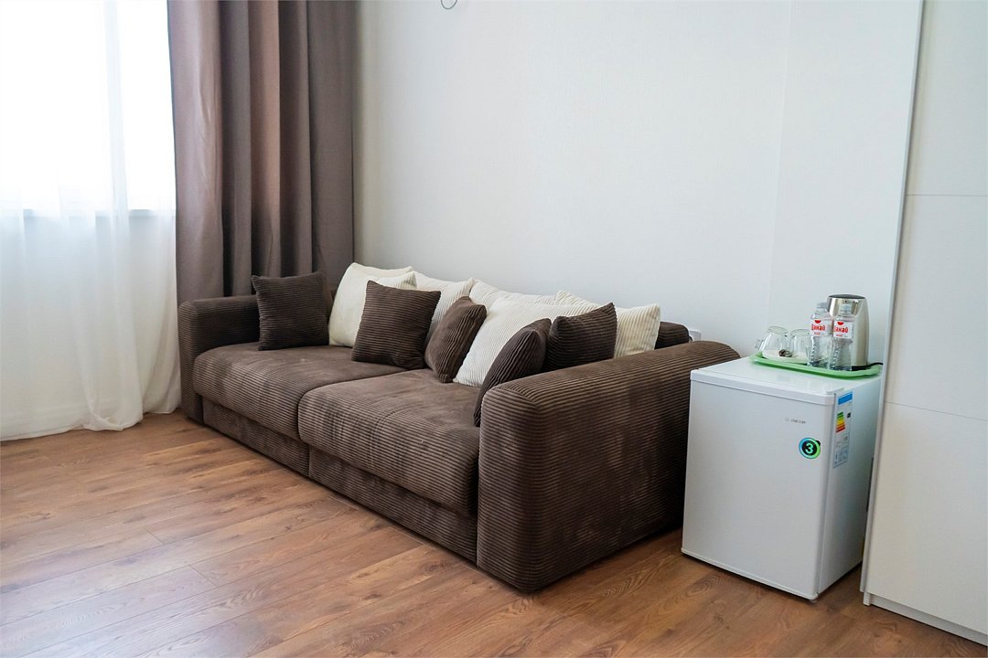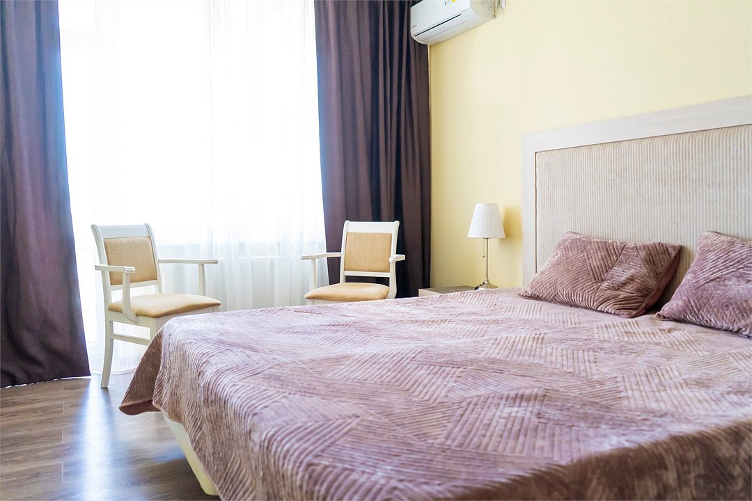 телевизор, Wi-Fi, настольные лампы, электронные замки, душевая кабина, банные полотенца, тапочки, гигиенические средства, балкон, двуспальная кровать, диван, тумбы, стулья, шкаф для одежды, вешалки, зеркало, две комнаты, чайный набор, информационная карта, меню, унитаз, раковина, вид на море, ламинат, стол, сплит-система, сушилка для белья, диван-кровать, телевизор с плоским экраном, мини-холодильник, можно с питомцамиВ гостиничном номере