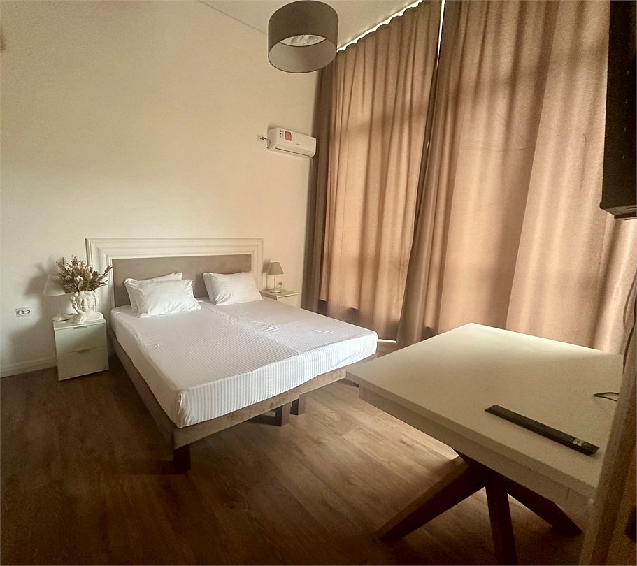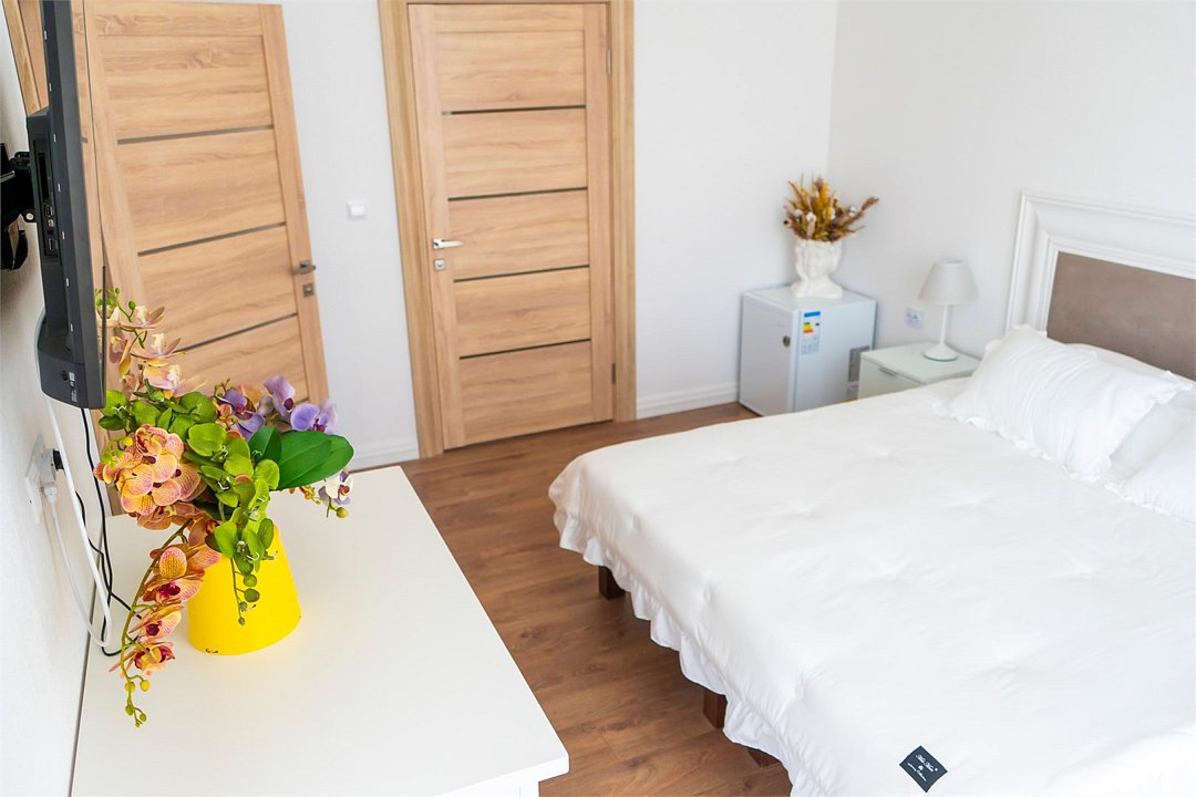 телевизор, Wi-Fi, душевая кабина, водонагреватель, банные полотенца, тапочки, гигиенические средства, балкон, две односпальные кровати, две односпальные или большая двуспальная кровать, тумбы, стулья, шкаф для одежды, зеркало, чайный набор, чайник, унитаз, раковина, вид на море, вид на город, стол, сплит-система, сушилка для белья, телевизор с плоским экраном, мини-холодильник, можно с питомцамиВ гостиничном номере