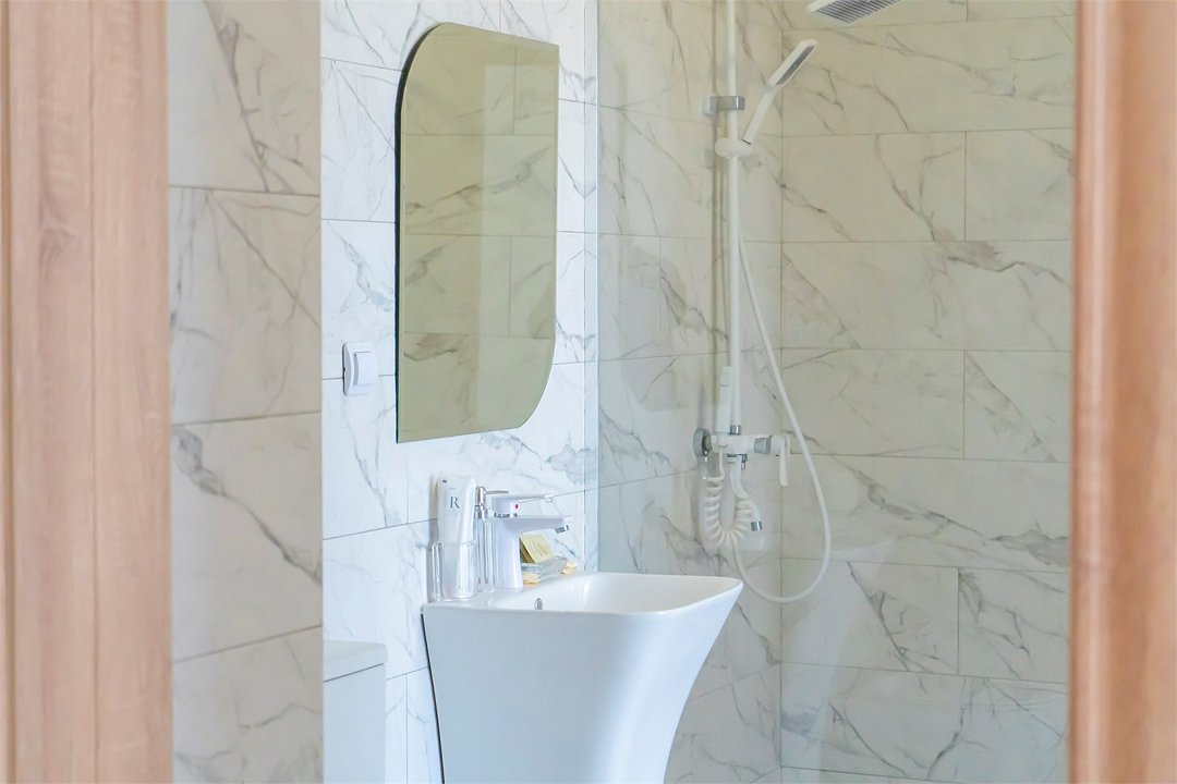 кабельное телевидение, Wi-Fi, настольные лампы, электронные замки, душевая кабина, банные полотенца, тапочки, гигиенические средства, балкон, две односпальные или большая двуспальная кровать, тумбы, стулья, шкаф для одежды, вешалки, зеркало, чайный набор, чайник, унитаз, раковина, вид во двор, ламинат, стол, сплит-система, сушилка для белья, мини-холодильник, общественный бассейн, можно с питомцамиВ гостиничном номере