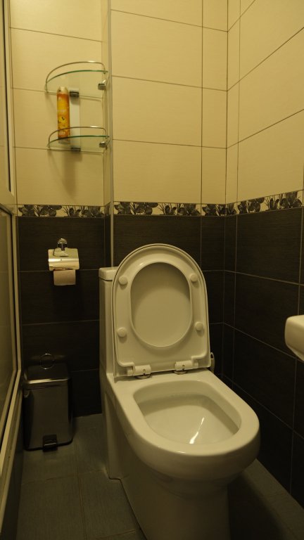 В номере две комнаты. В одной комнате двухспальная кровать, во второй — двухспальная кровать и раскладной диван. Комнаты просторные, есть балкон, телевизоры. Санузел один на две комнаты. Постельное белье и полотенца предоставляются.