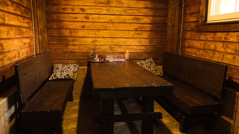Инфраструктура: купель, зона отдыха, шапочки, душМинимальное время аренды: 2 часаВремя работы: до 24.00Баня на дровах с проточной речной водой в купели.