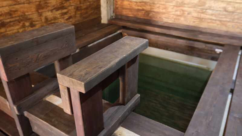 Баня на дровах с проточной речной водой в купели.
