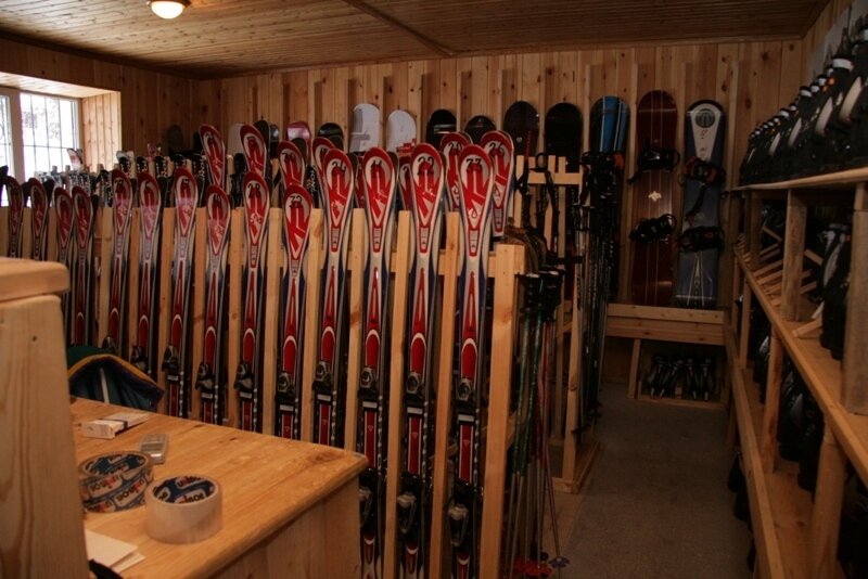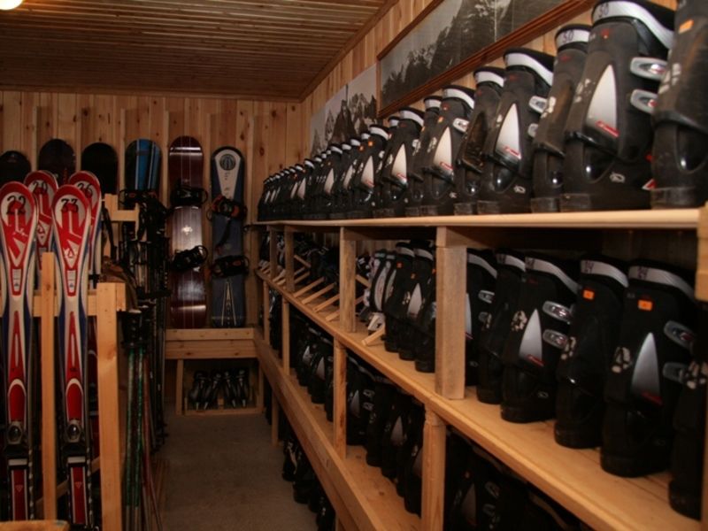 Большой выбор непоношенного инвентаря. Лыжехранилище для гостей комплекса.