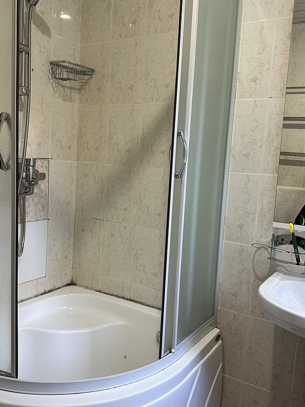 Семейный номер на 6 человек, 3 комнаты и балкон с красивым видом на горы! В номере холодильник, телевизор, чайник, чашки, wi-fi, душевая кабина.
