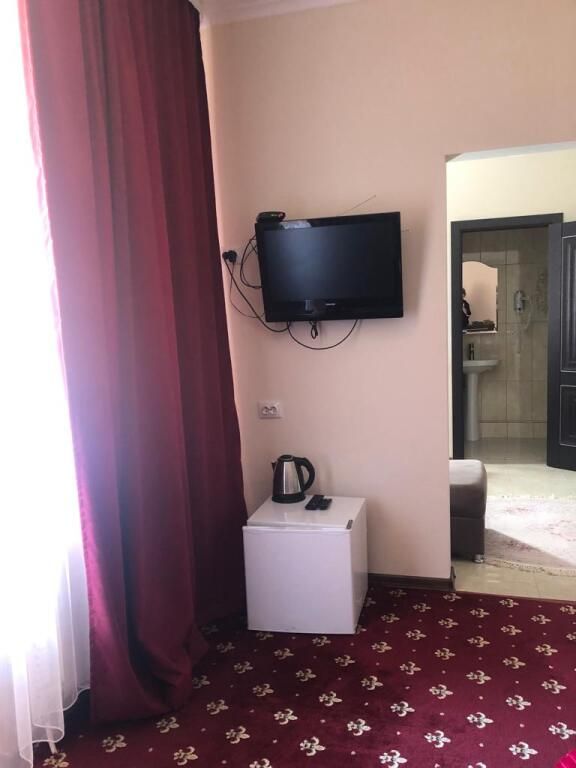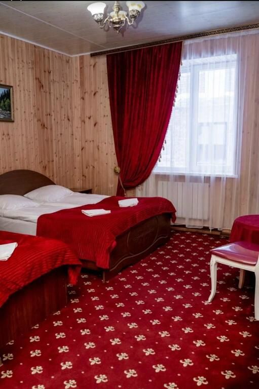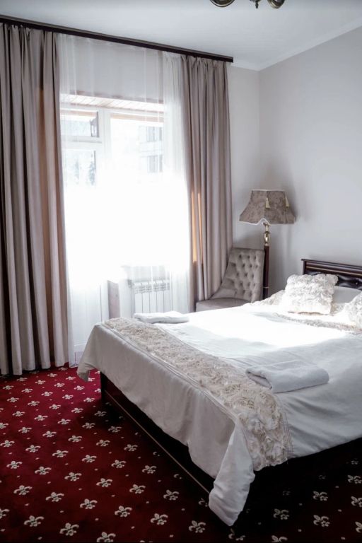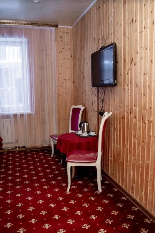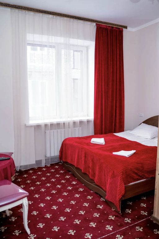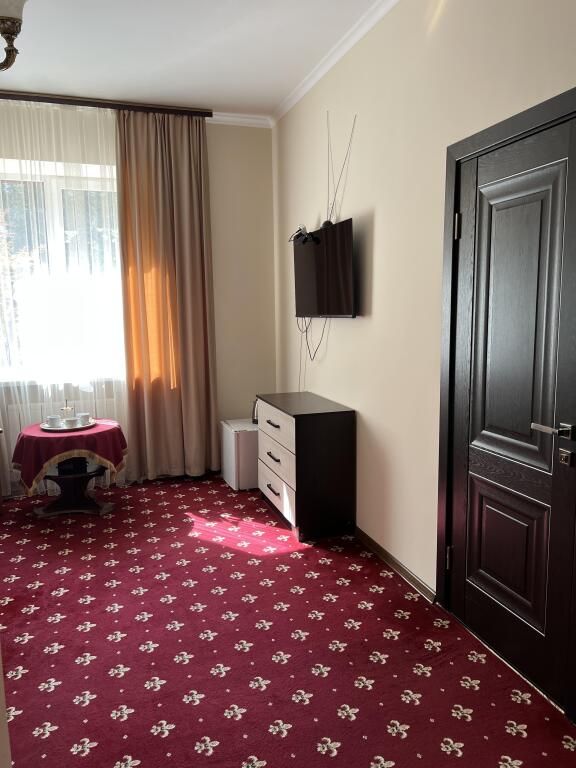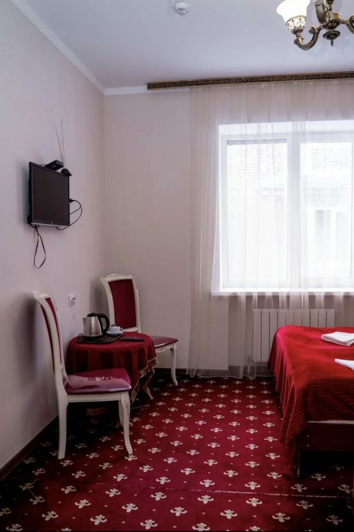 В номере: 2-х спальная кровать, тумбочка, торшер, шифоньер, зеркало, ковер, телевизор, с/у, душевая кабина.