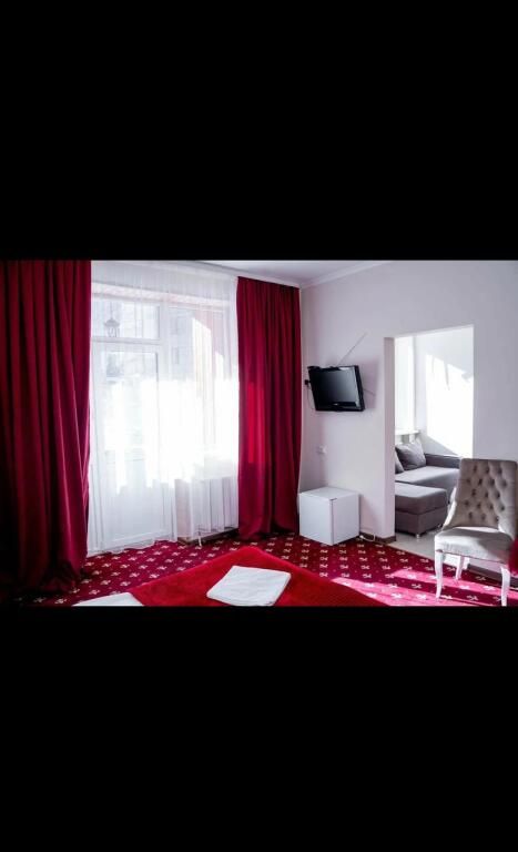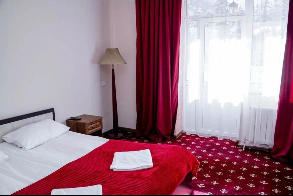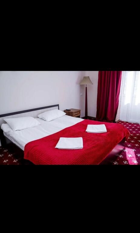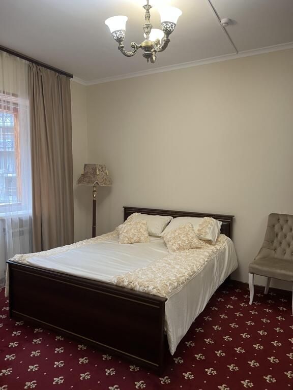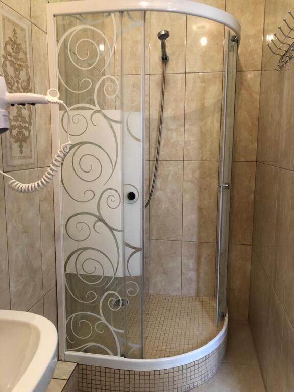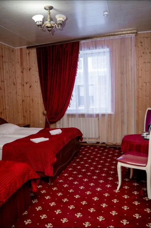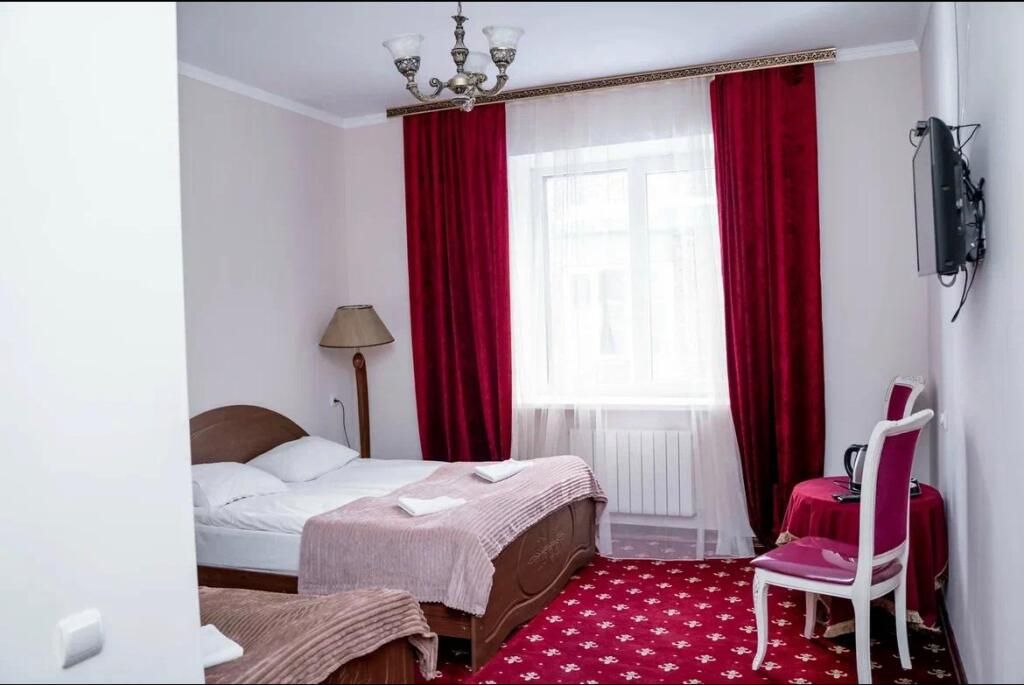 В номере: 2-х спальная кровать, тумбочка, торшер, шифоньер, зеркало, ковер, телевизор, с/у, душевая кабина.