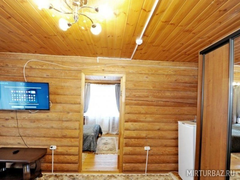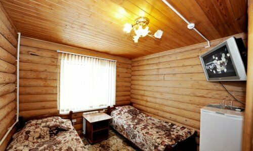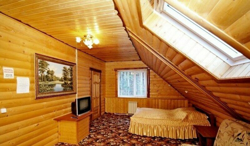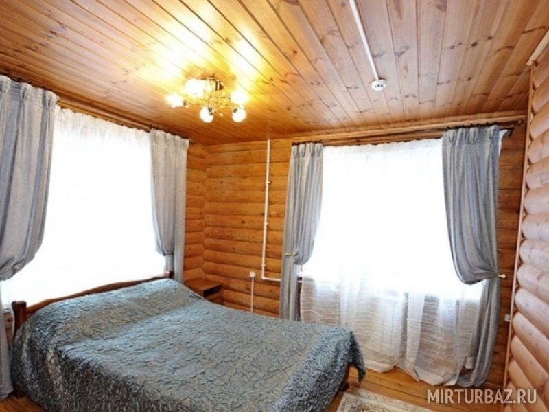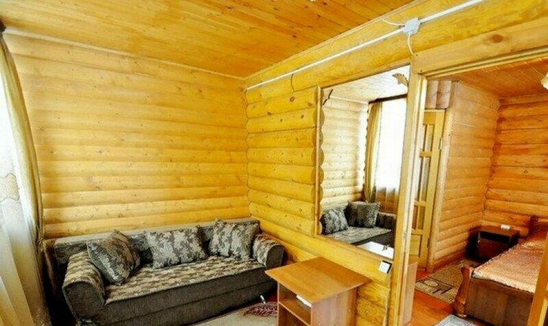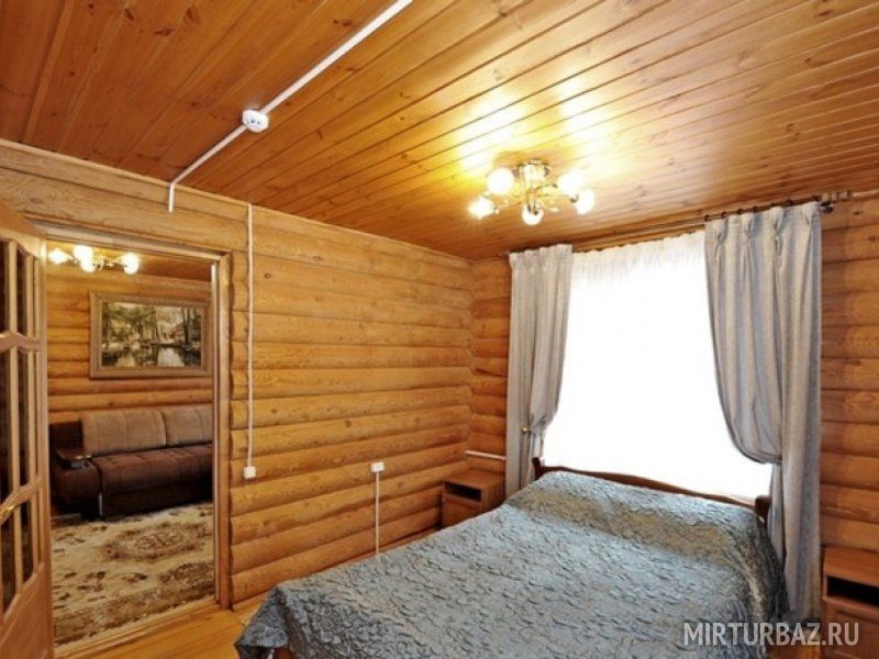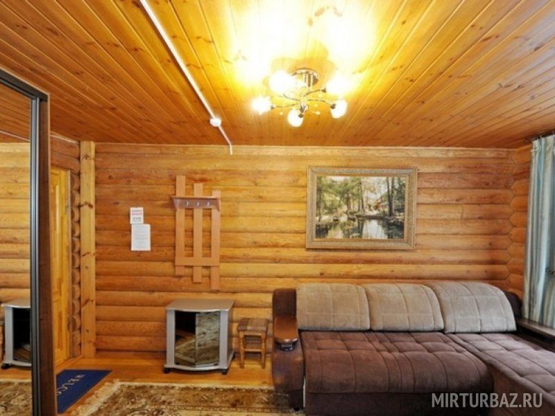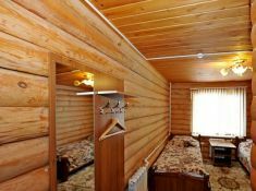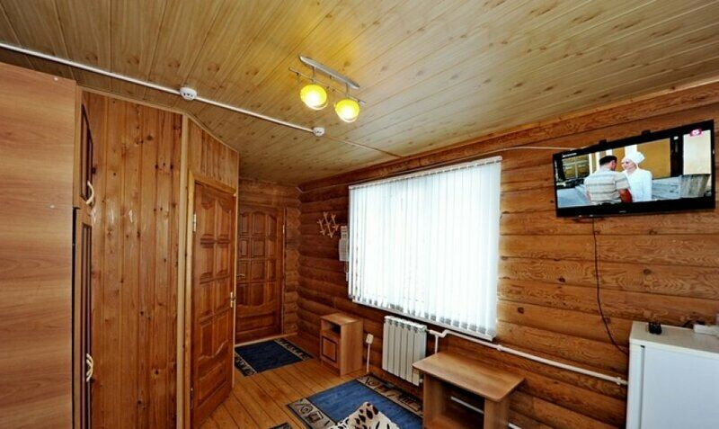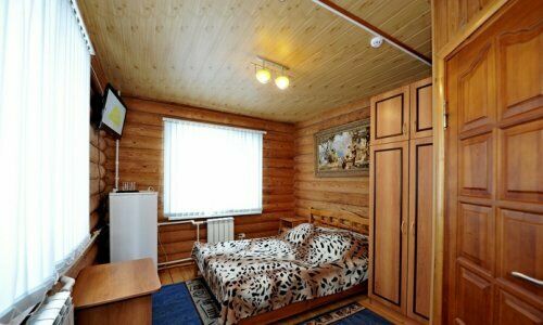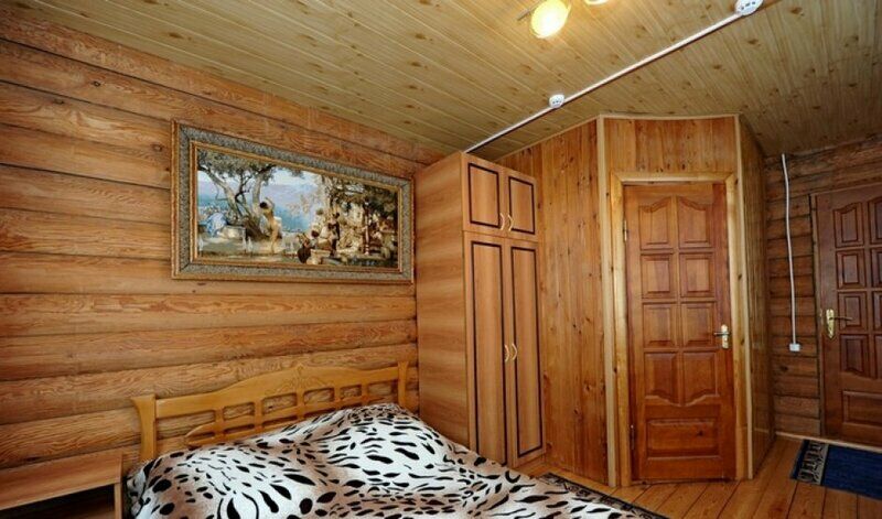 Отель сделан в виде охотничьего домика с соответствующей атрибутикой – охотничьими трофеями, в виде голов животных на медальонах, и шкур зверей. Весь интерьер гостиницы выполнен из натурального дерева.