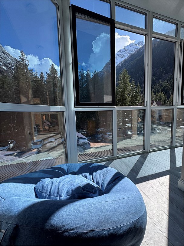 Студия Премиум "Sky" — это роскошный номер в апарт-отеле Subay с панорамными окнами c видом на горные вершины. Номер оформлен в свежих и воздушных синих и белых тонах, создающих ощущение простора, легкости и безмятежности. Интерьер вдохновлен небом и облаками, что делает пространство уютным и одновременно наполненным светом. Освещение в номере играет важную роль: большие окна пропускают много естественного света, а вечером мягкая подсветка и светильники с теплым светом создают уютную атмосферу. В студии предусмотрено: • Просторная спальная зона с кроватью премиум-класса • Гостиная зона с диваном и телевизором с плоским экраном • Полноценная кухня с современной техникой: плита, холодильник, микроволновая печь, посуда, кофемашина, чайная станция. • Ванная комната с просторной душевой кабиной, набором индивидуальных принадлежностей. • Большой балкон с мебелью для отдыха и панорамным видом на горы. • Бесплатный Wi-Fi. • Доп. услуги (не включены в стоимость): всесезонный подогреваемый бассейн, спа-центр, завтрак шведский стол, ресторан кавказской кухни Площадь: 35 м². Вместимость: до 4 человек.Услуги и удобства