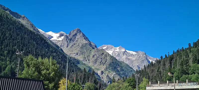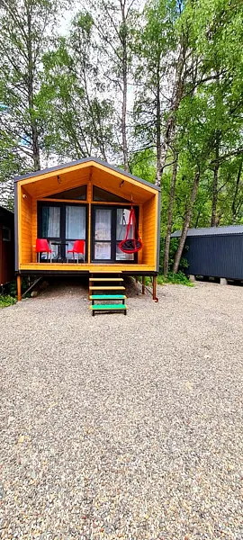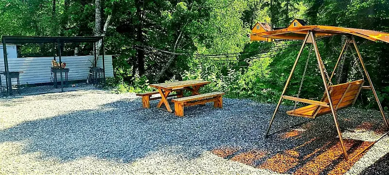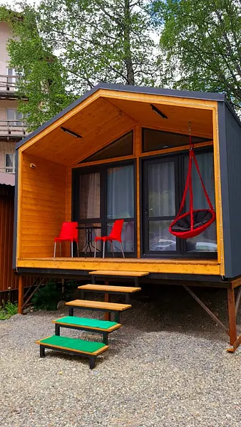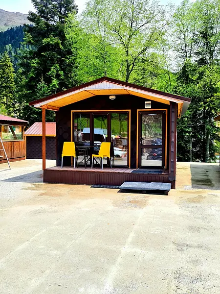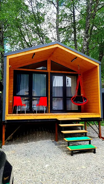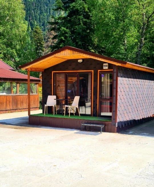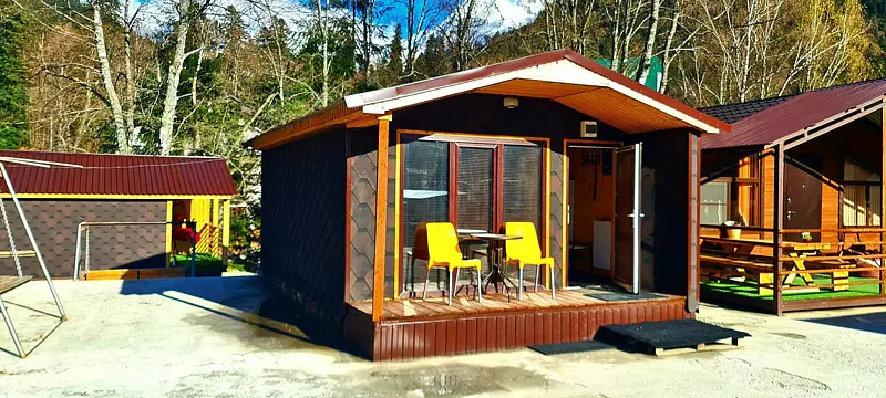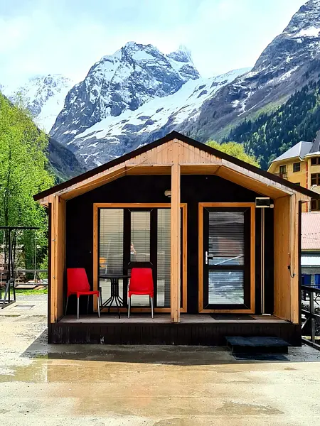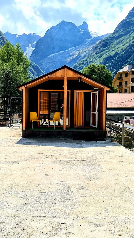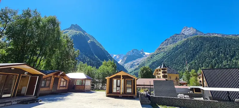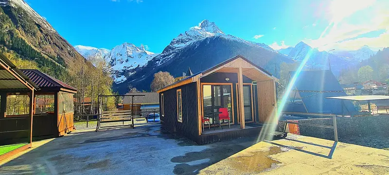 Шале «Эко домики» домики расположилось в самом сердце Домбая, на берегу реки Аманауз, всего в двух минутах ходьбы от подъемника.