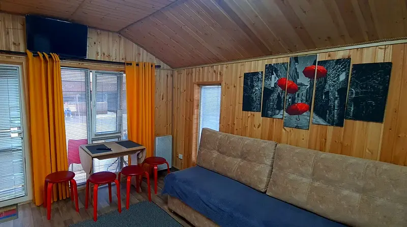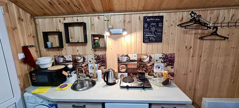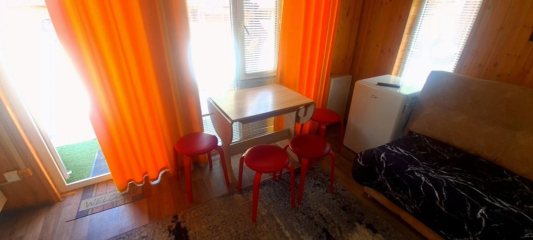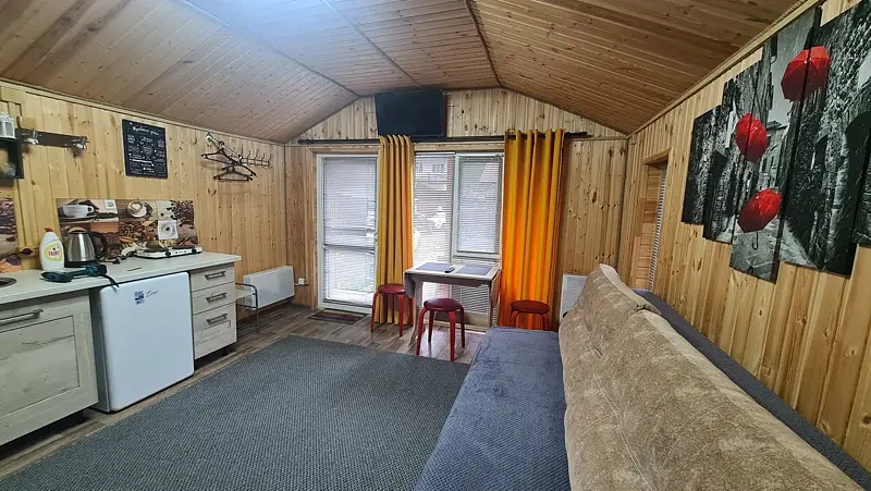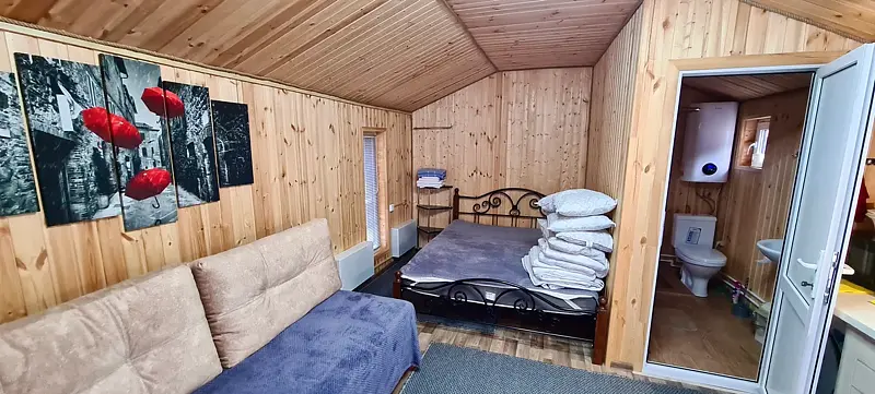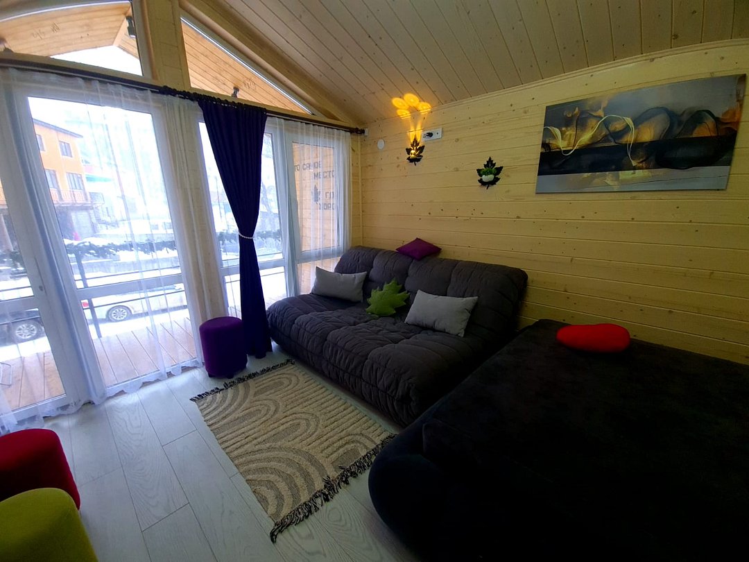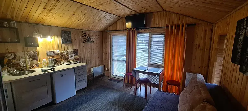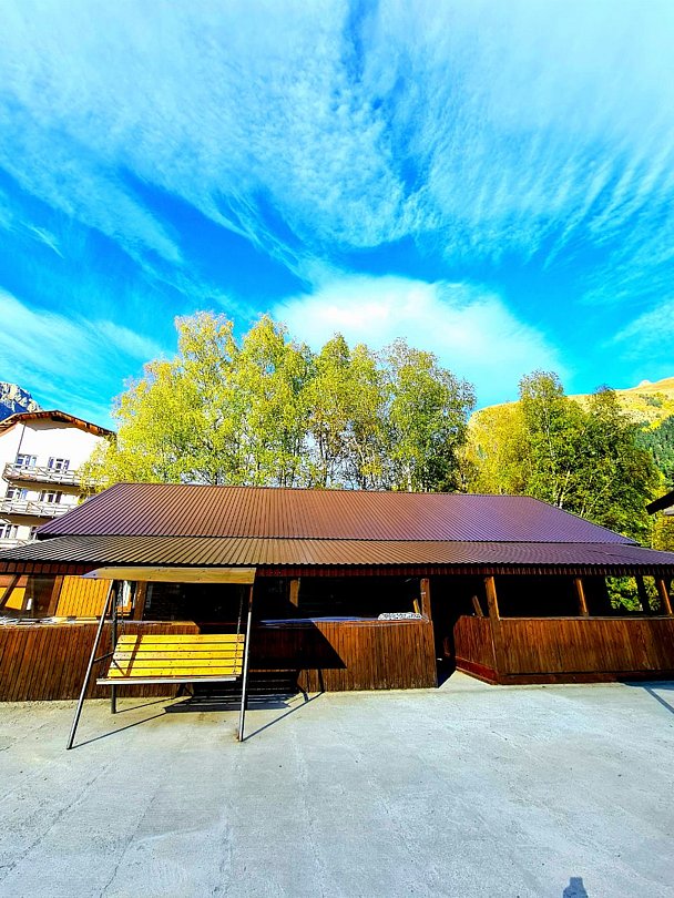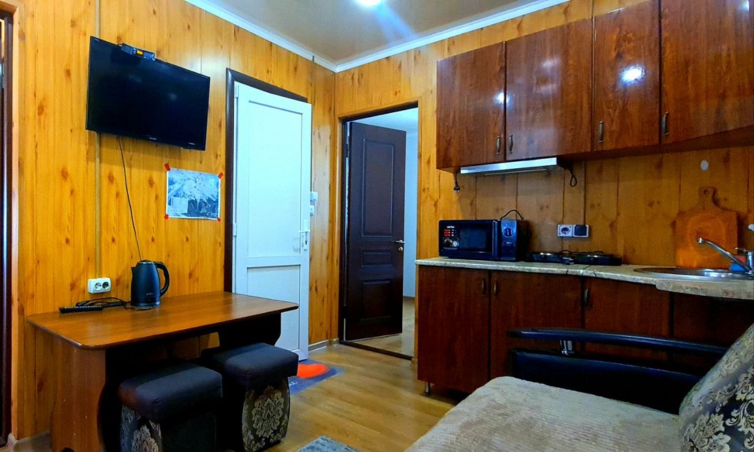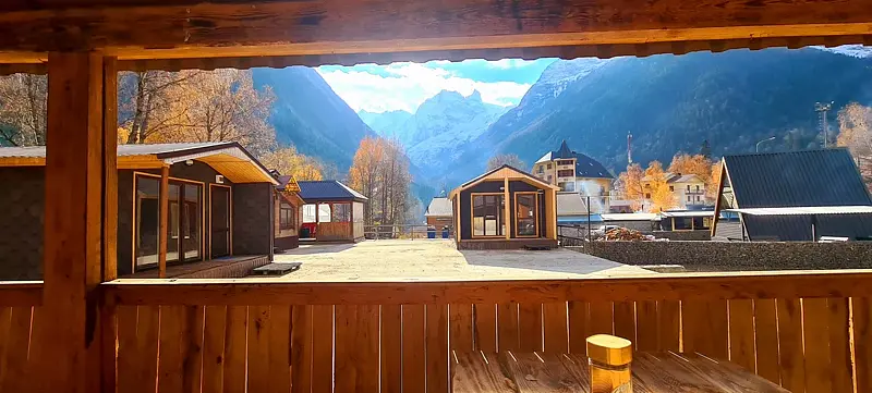 Каждый из домиков обладает уютной атмосферой, отоплением, удобной мебелью, канализацией, кухней и всеми необходимыми для комфортного проживания удобствами. Из окон открываются захватывающие дух панорамы Главного Кавказского хребта.