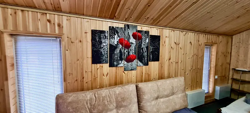 В непосредственной близости от шале вы сможете найти бани, магазины, аптеки, кафе, сбербанк, каток, горку и центр развлечений.