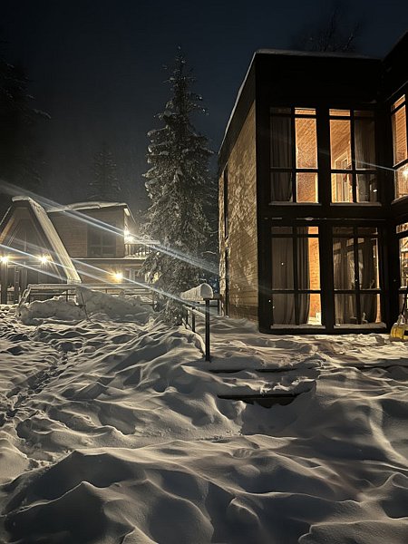 На территории дома оборудована парковка, площадка для пикника и барбекю. Также предоставляются услуги дежурного врача, лыжный трансфер, прокат лыжной экипировки, индивидуальная регистрация заезда и отъезда и возможность отдыха вместе с любимым питомцем.