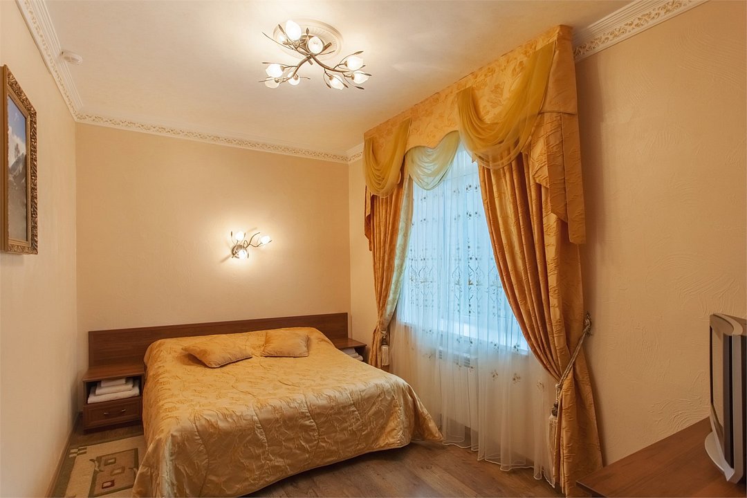 Отель представляет собой два корпуса. Первый занимает четыре этажа, в котором для заселения имеются 16 номером, второй в семь этажей. ОВ целом жилой фонд позволяет заселить до 150 людей. В отеле есть номера различной комфортабельности. В каждом из них имеется санузел, мебель и телевизор.