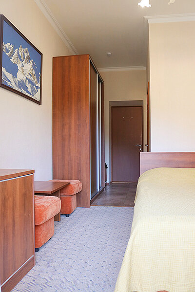 Короткий отпуск с друзьямиМилый отельОтель находится в самом центре Домбая. Отличный вид из номера. Мы жили на 4 этаже. Уютно, светло. Хорошие впечатления от гостиницы.