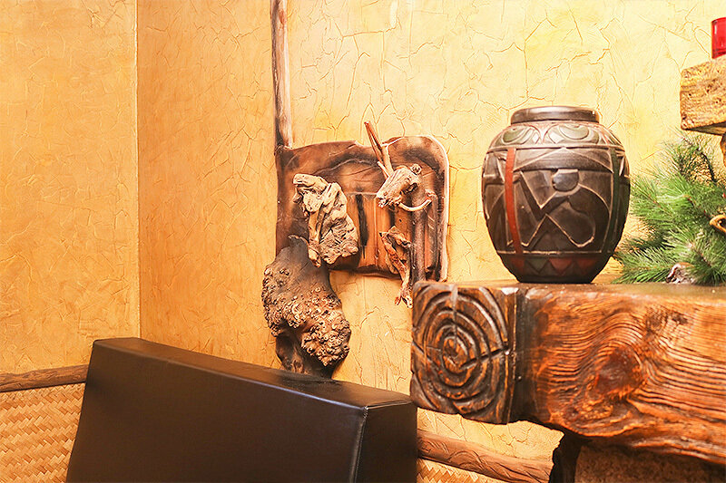 SPA-центр «Русская баня» — это двухэтажный деревянный сруб, где проводятся банные процедуры. Внутри есть парная на дровах для 10 человек, бассейн-купель с ледяной родниковой водой, комната отдыха с столом для чая и предлагаются услуги массажа по предварительной договоренности. Веники также являются неотъемлемой частью бани и доступны в SPA.